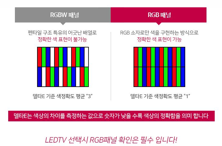 제대로 된 색감의 생동감 넘치는 화질을 원하신다면 반드시 RGB 방식의 패널인지 확인 하세요