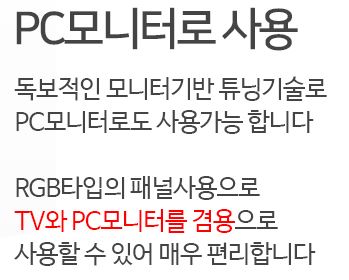 RGB 타입의 패널 사용으로 TV와 PC 모니터를 겸용으로 사용 할 수 있어 매우 편리 합니다