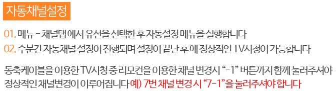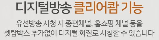 유선 방송 시청시 종편채널, 홈쇼핑 채널 등을 셋탑박스 추가 없이 디지털 화질로 시청 할 수 있습니다