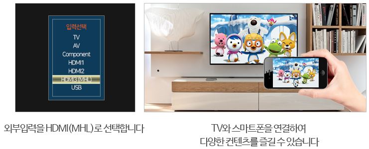 스마트폰 MHL 기능 - 스마트폰과 연결 가능한 MHL 기능 탑재