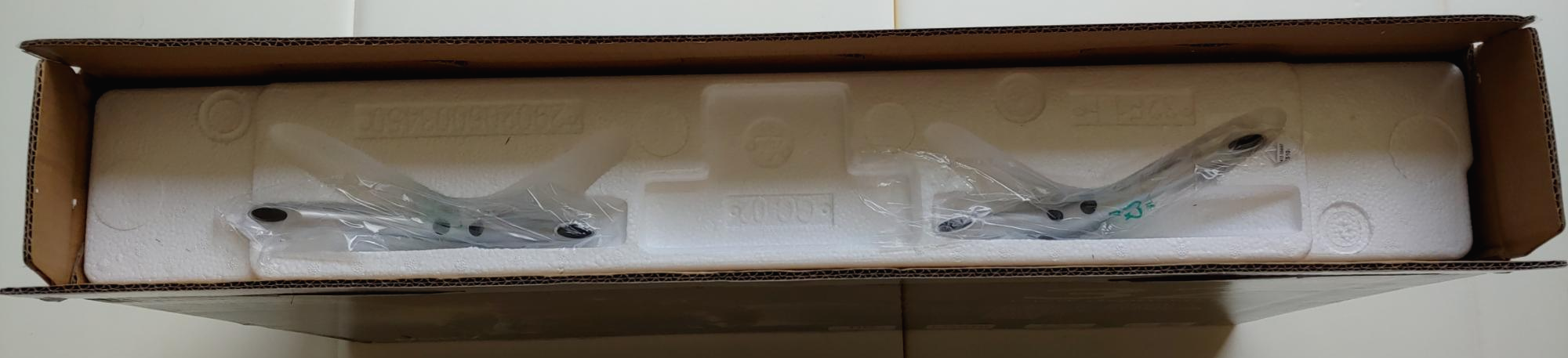 DSPTV DU3200 박스 윗 부분의 투명 테이프를 제거하고 개봉 했을때 제일 먼저 TV 받침대 역활을 하는 스탠드가 보였습니다