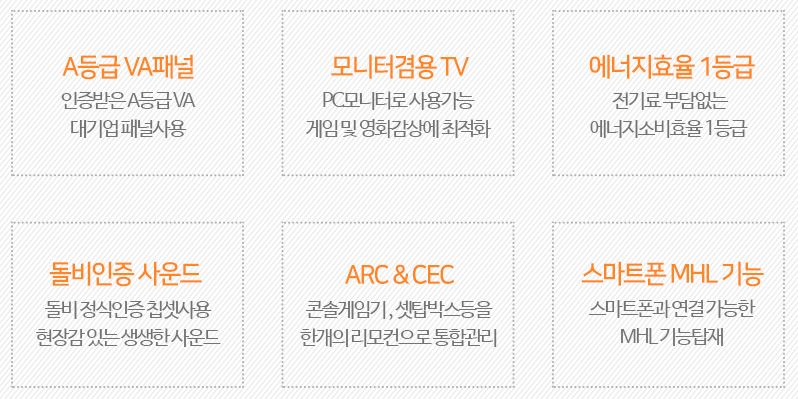 정품 VA 패널, 에너지 소비효율 1등급, ARC & CEC, 돌비 사운드
