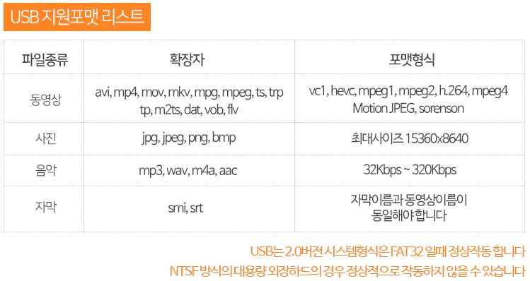 USB 지원 포맷 리스트