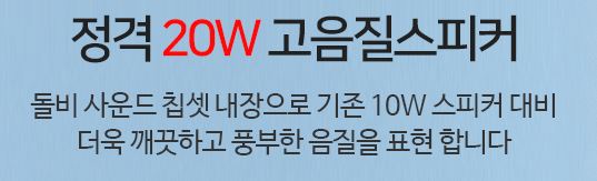 돌비 사운드 칩셋 내장으로 기존 10W 스피커 대비 더욱 깨끗하고 풍부한 음질을 표현 합니다