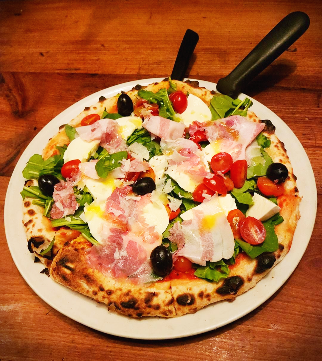 화덕피자로 도우가 쫄깃하고 탄맛이 가미된