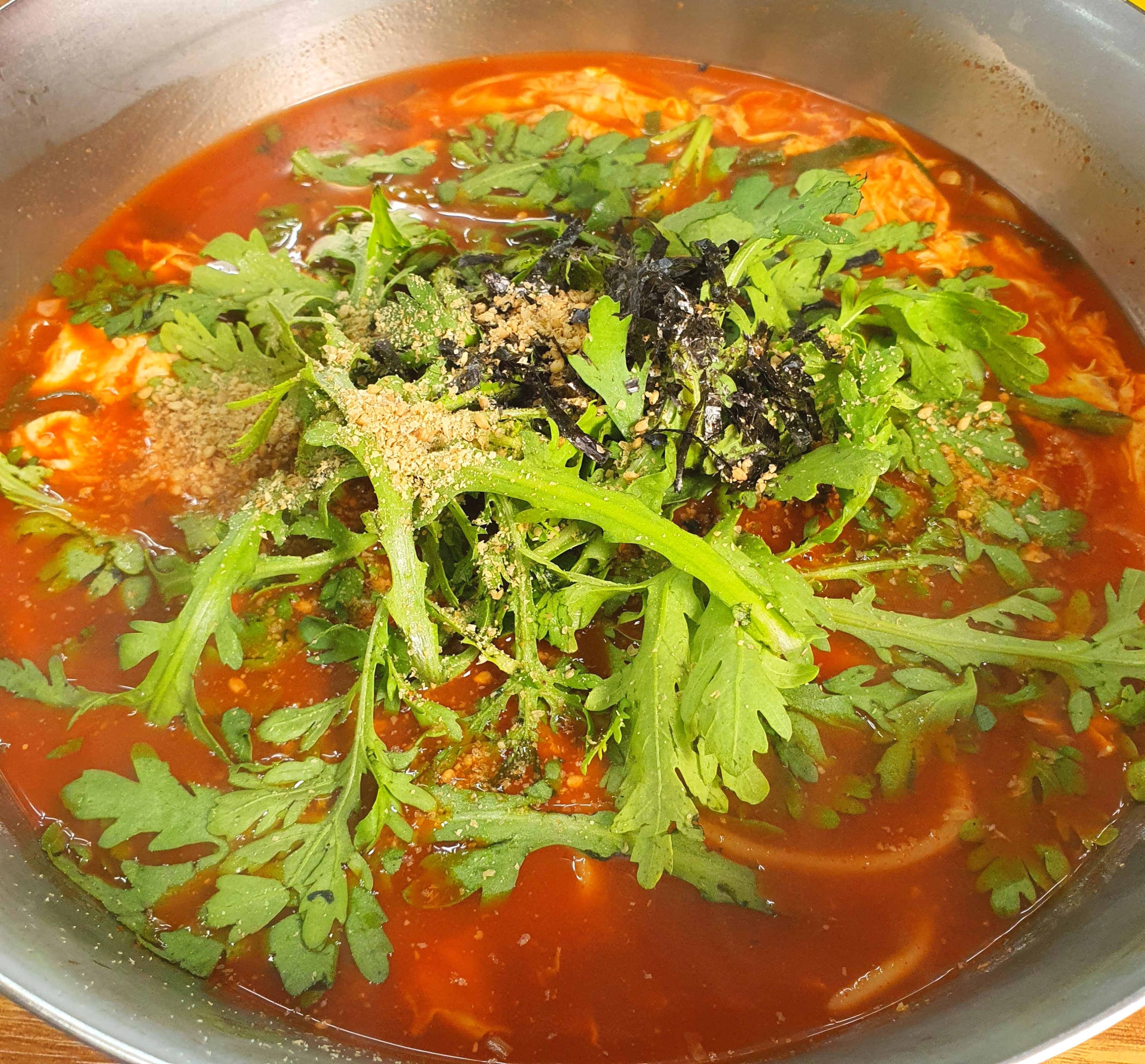쑥갓 올려 먹는게 향도 좋고 더 맛있어요