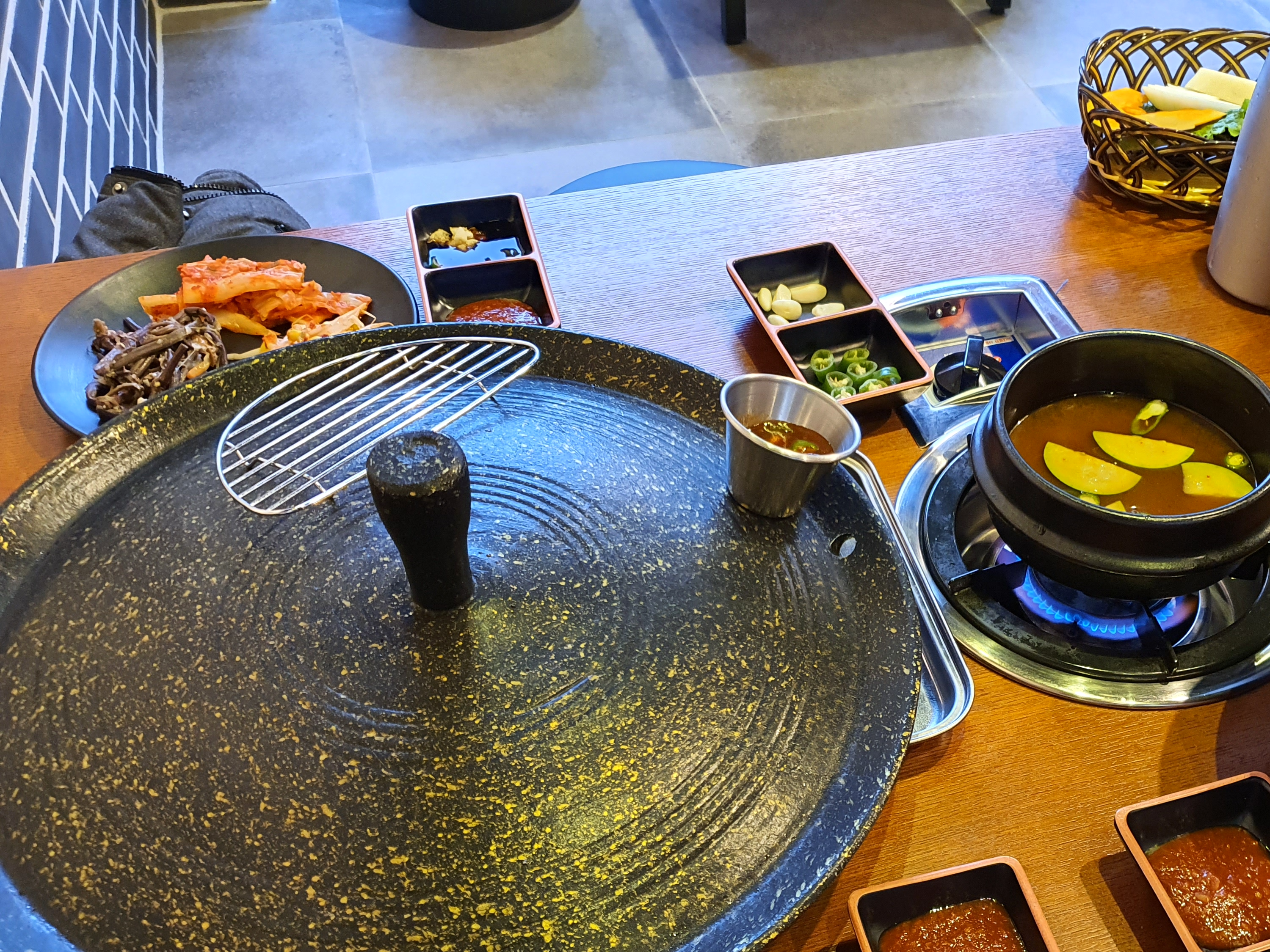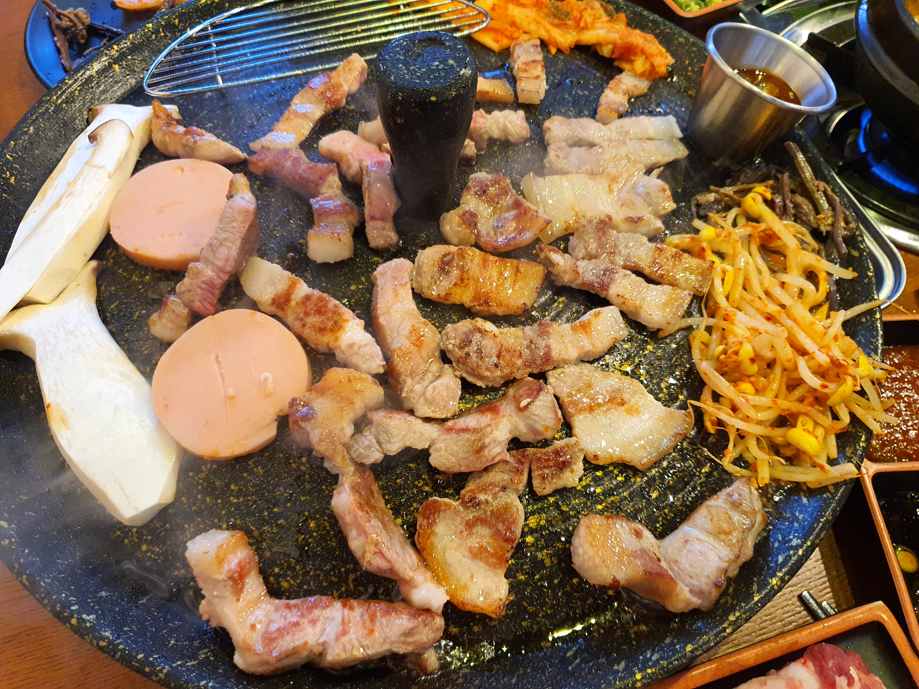 솥뚜껑에 구워진 삼겹살도 맛있고
