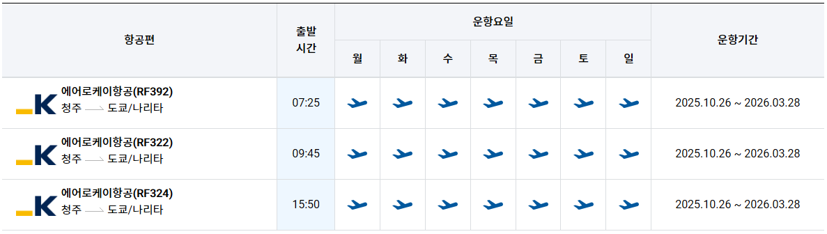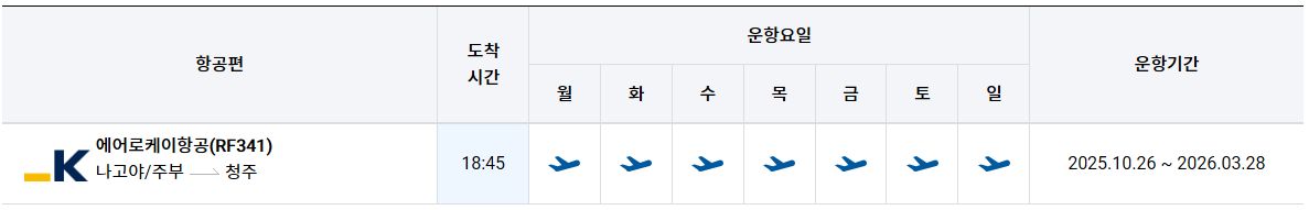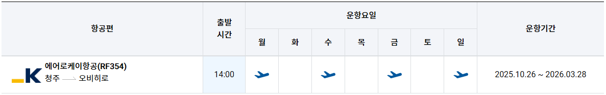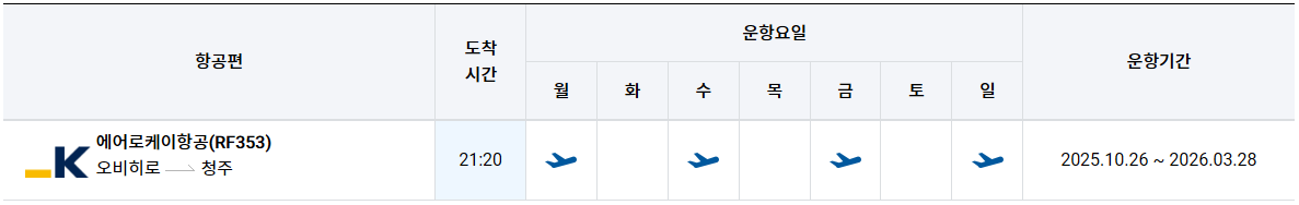 운항기간 : 2025.10.26 ~ 2026.03.28