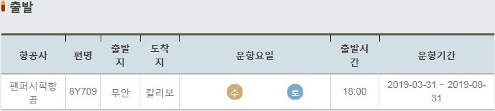 출발(편명 / 출발지 / 도착지 / 운항요일 / 출발시간 / 운항기간)