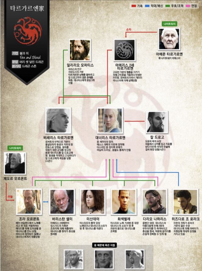 칼드로고 그리고 대표적으로 호감캐릭터 였던 제오르, 아에몬 그리고 마상시합 결승에서 존스노우의 아버지 라예가르와 붙었었던 바리스탄셀미 까지 모두 죽고 대너리스 수하들과 티리온, 바리스가 버티고 있습니다