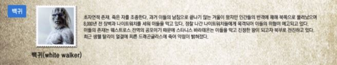 백귀들의 왕인 나이트킹은 과거 인간왕국의 왕들이었는데 판타지 세계에서 흔히 말하는 언데드(Undead)가 되어 인간 세상을 위협하는 존재로 나타납니다