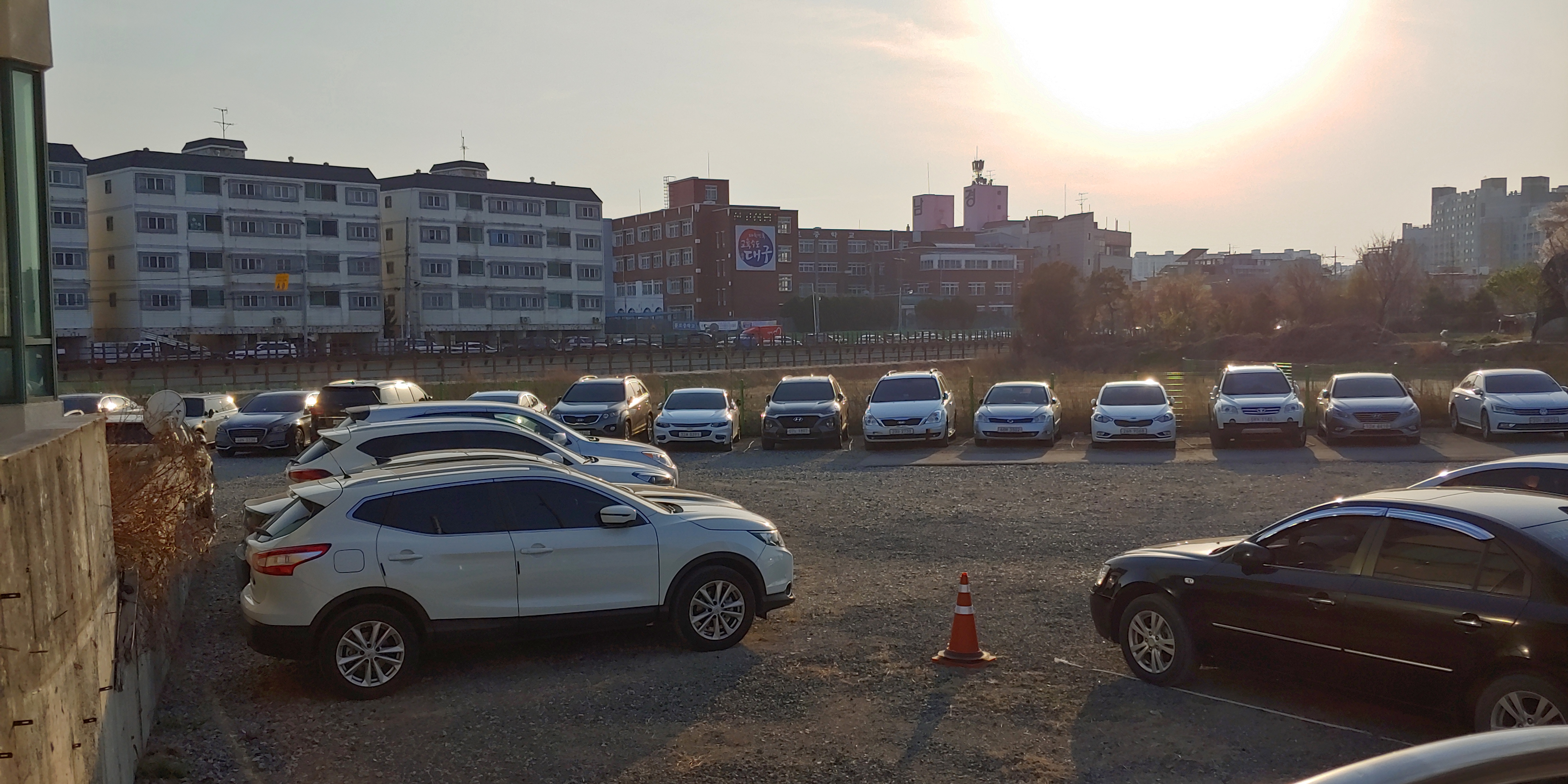 공항 1 공영 주차장은 전체가 포장이 되어있었는데 공항 2 공영 주차장은 아래 사진처럼 앞쪽만 포장이 되어있고 안쪽으로 들어가면 자갈을 깔아 뒀어요