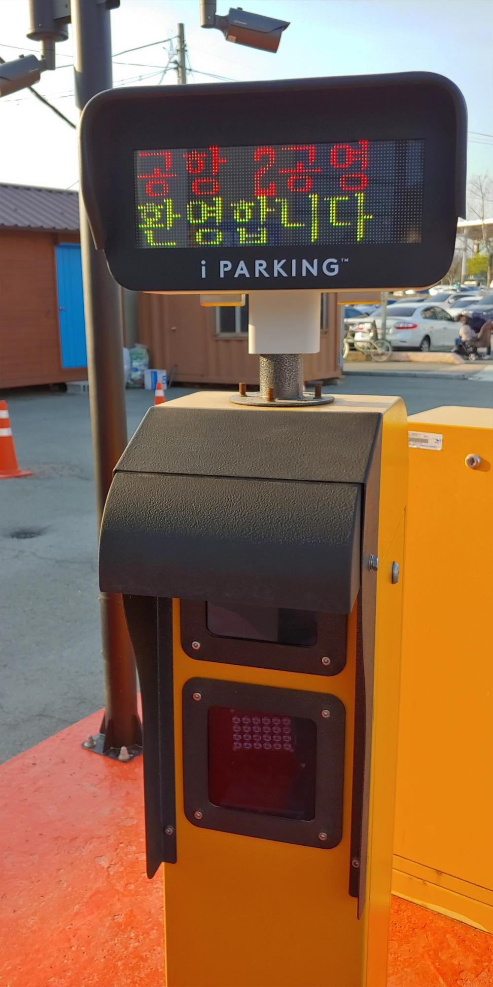 입구에 차단기가 차량번호 인식하면 올라가서 입차가 가능합니다