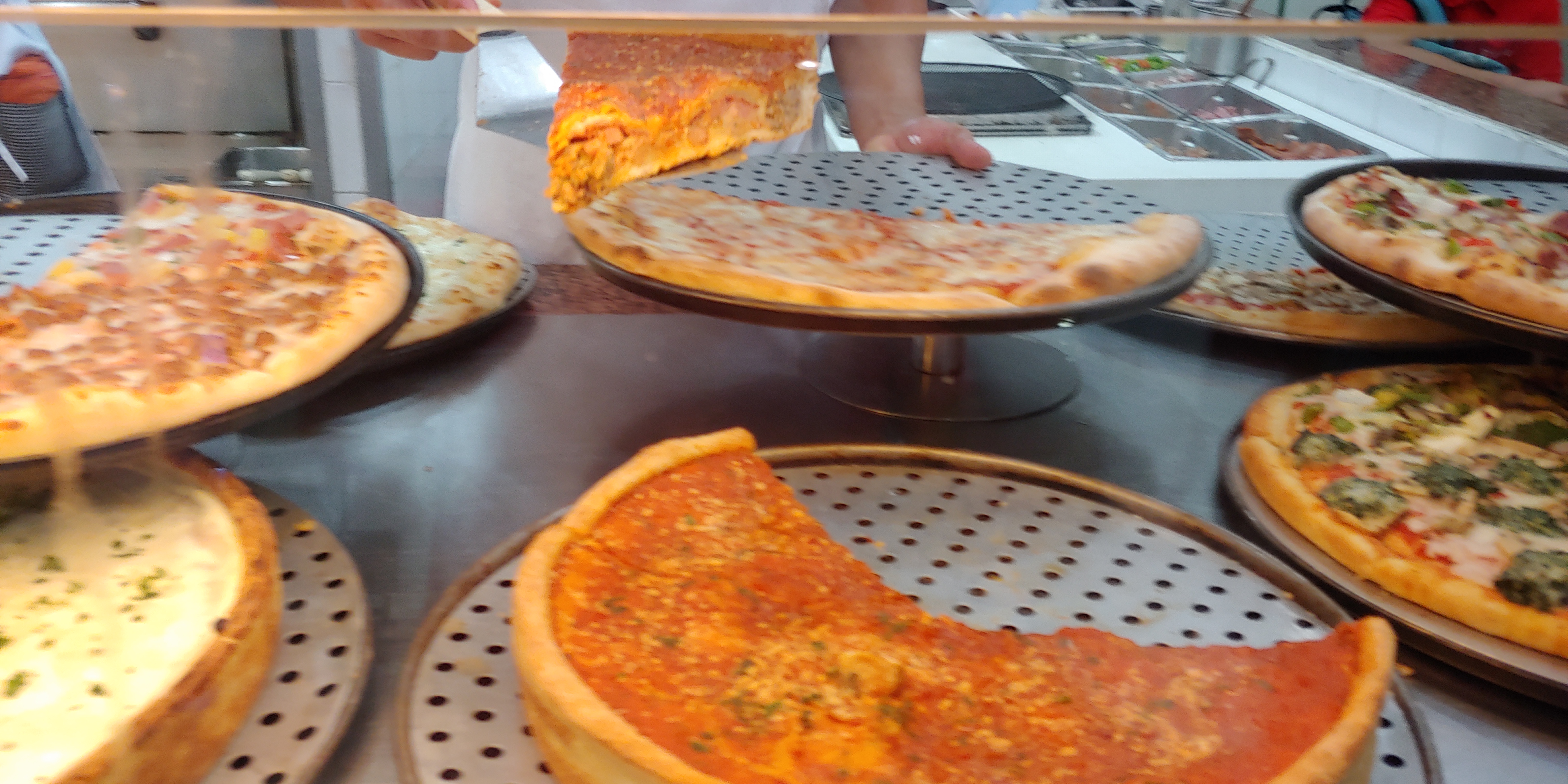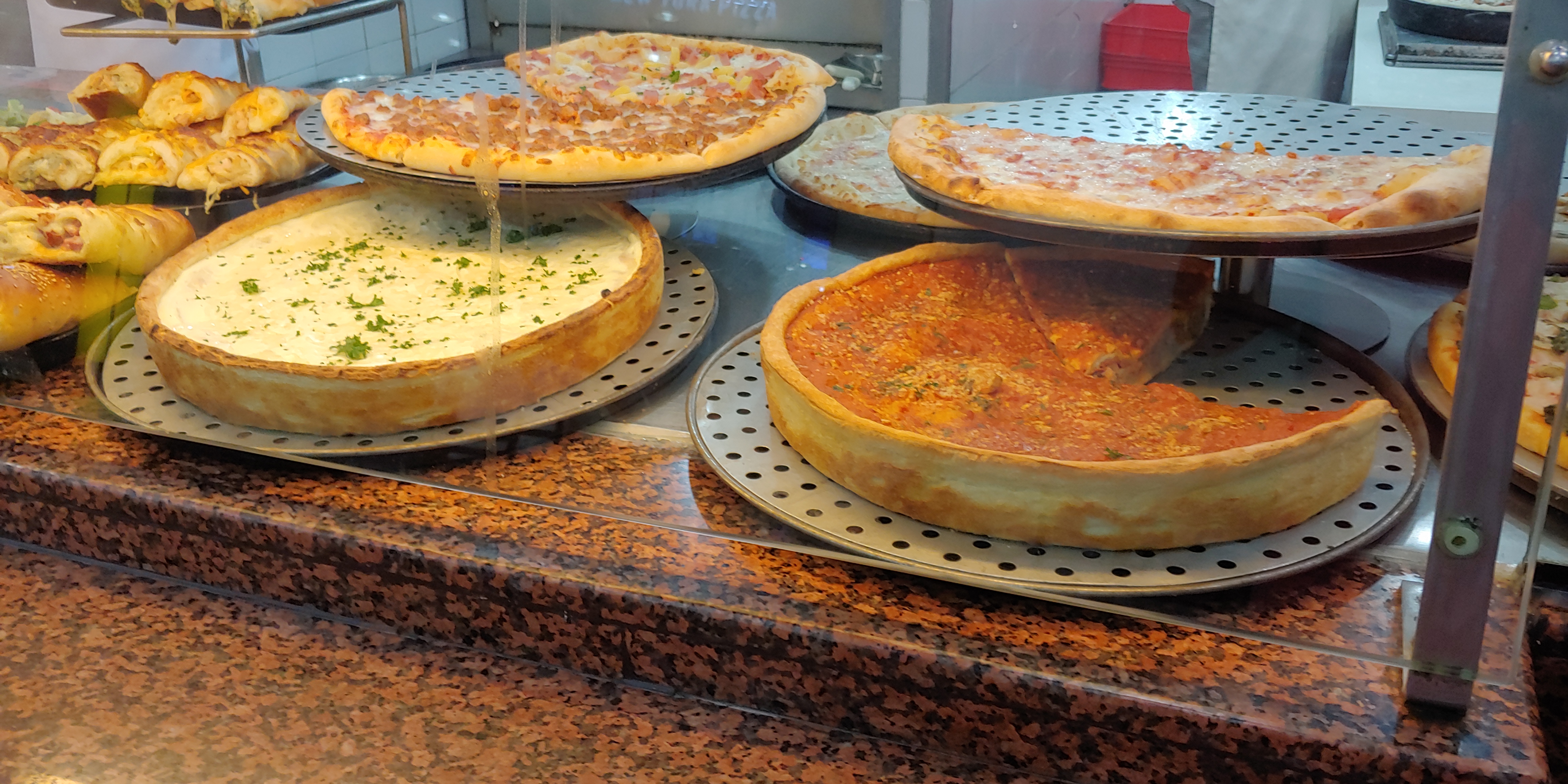 가격은 CHICAGO DEEP DISH SLICE 208페소, MEAT LAS 237페소 였습니다