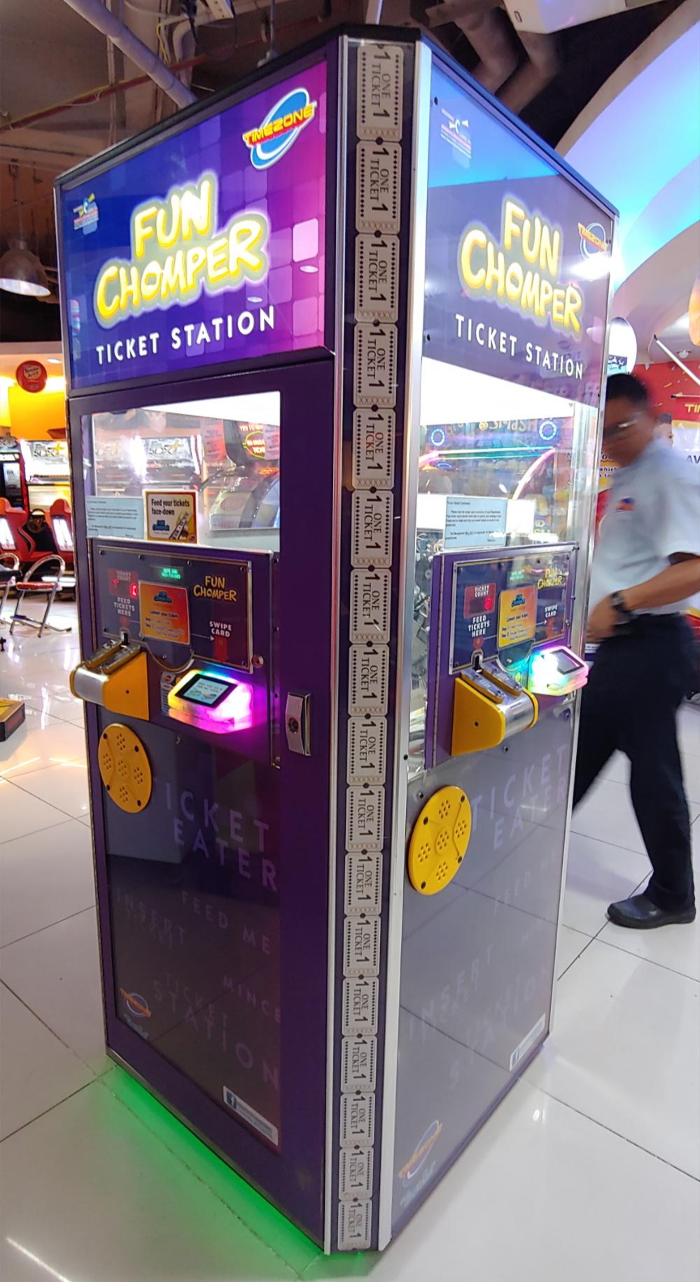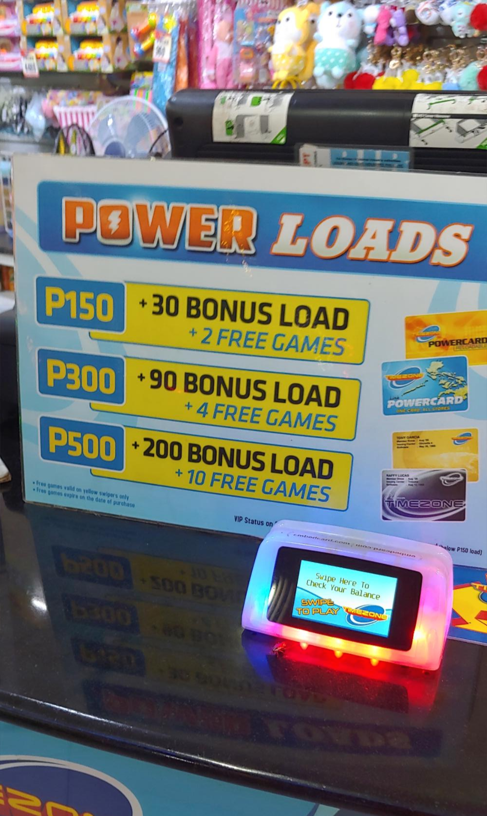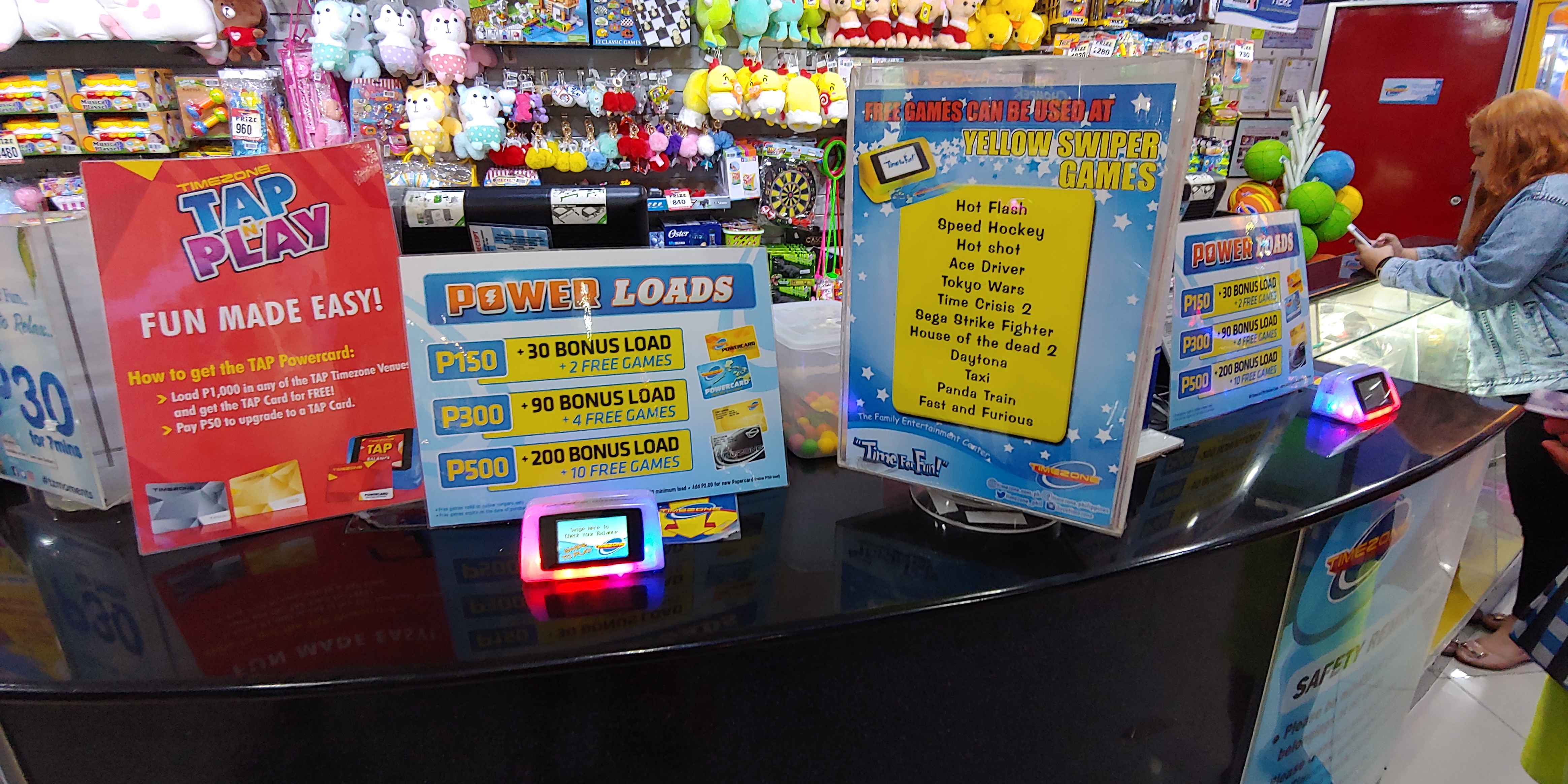 SM 몰(SM CITY CEBU)와 다르게 토큰으로 교환해서 게임을 하는 방식이 아닌 원하는 금액만큼의 페소를 내면 플라스틱 카드에 충전을 해줘서 게임할때 마다 카드를 사용하여 게임을 하는 방식 이었으나 여기도 종이 쿠폰이 나오는 게임도 많이 있어 쿠폰을 모아서 상품으로 바꿔 갈 수 있었습니다