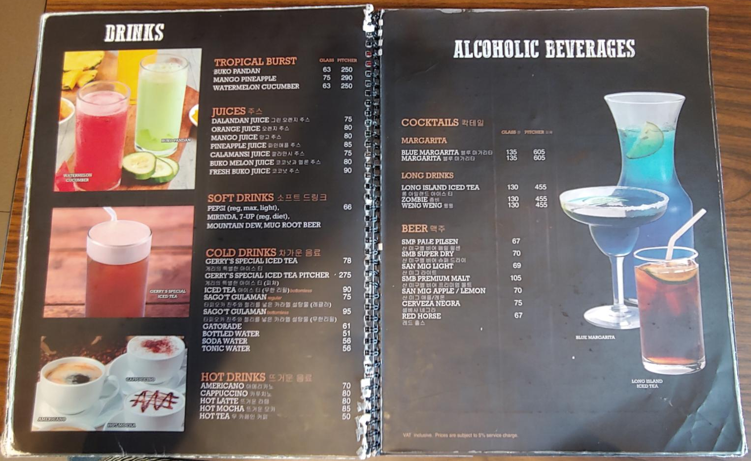 한국 사람들이 많이 와서 그런지 메뉴판을 보면 한글로 적혀 있었습니다