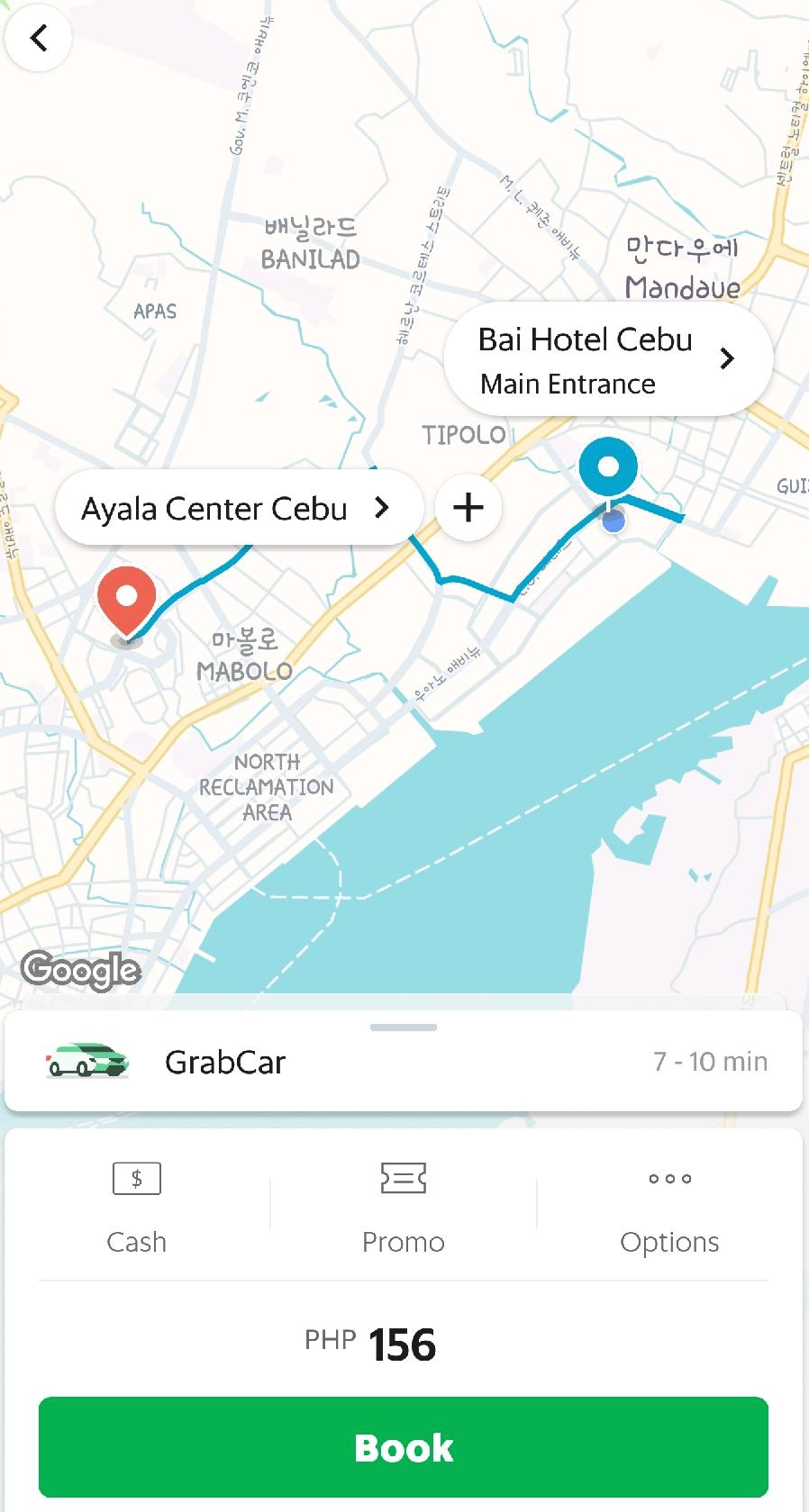 그랩 비용은 156페소 였습니다