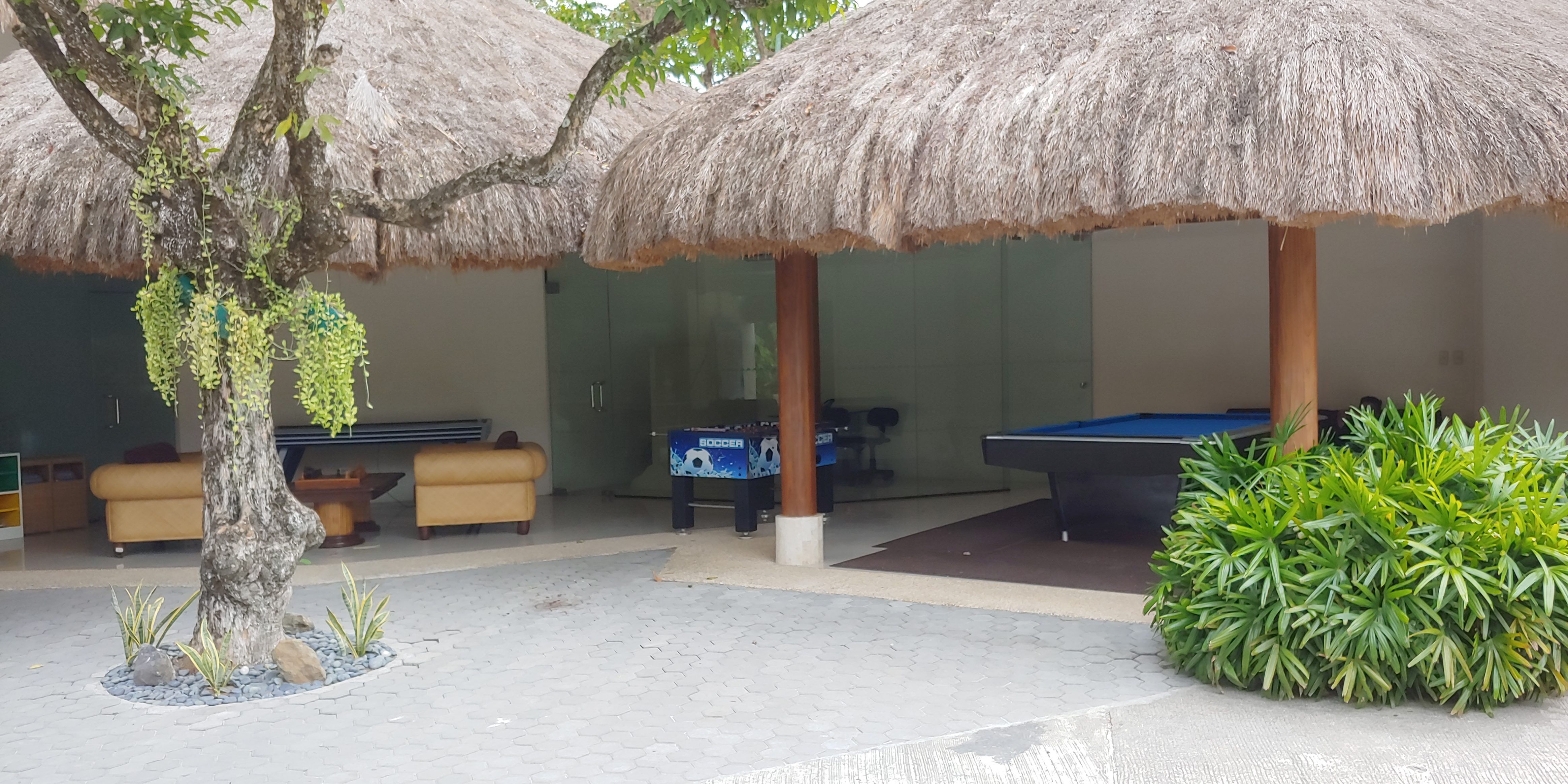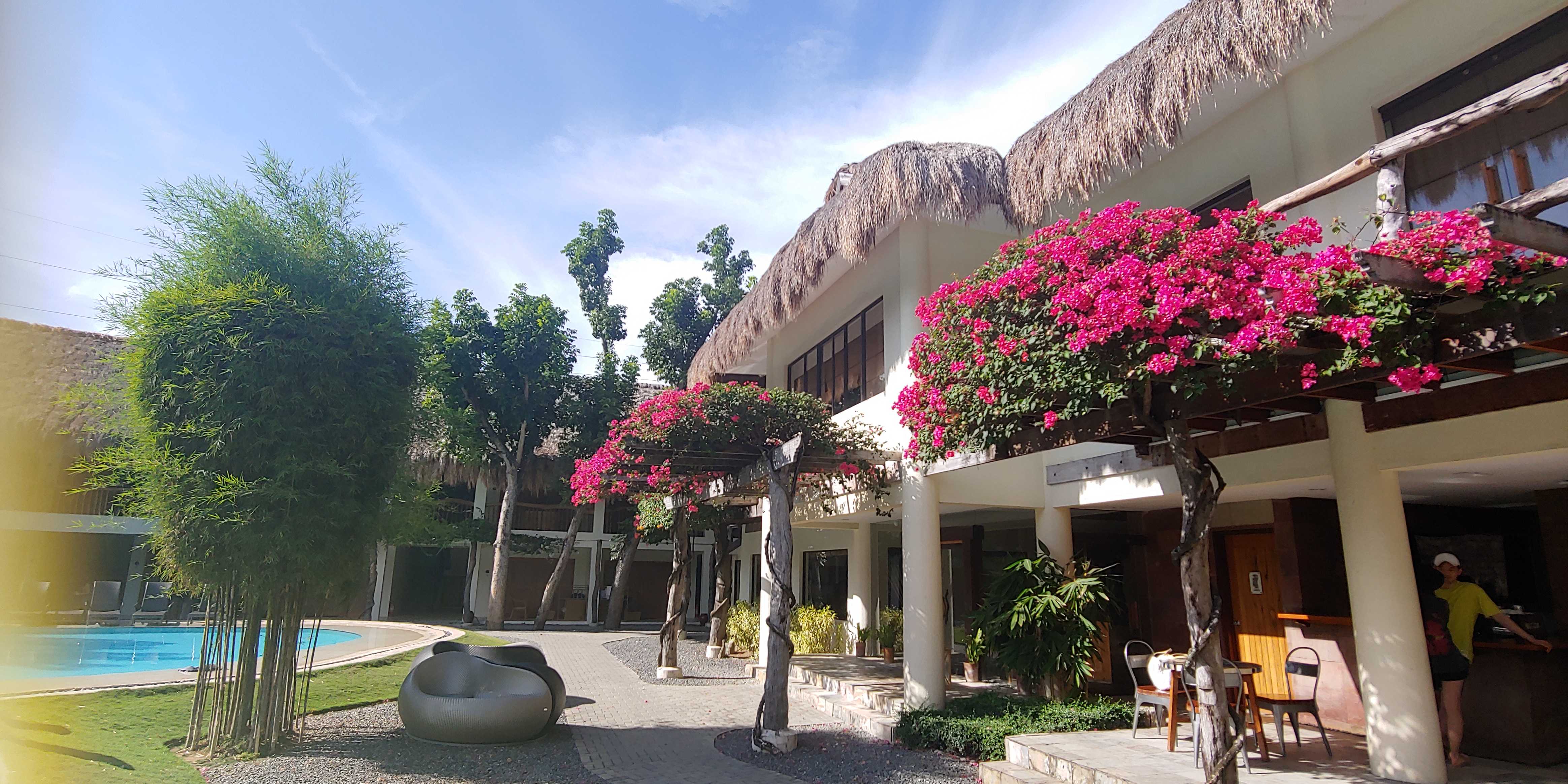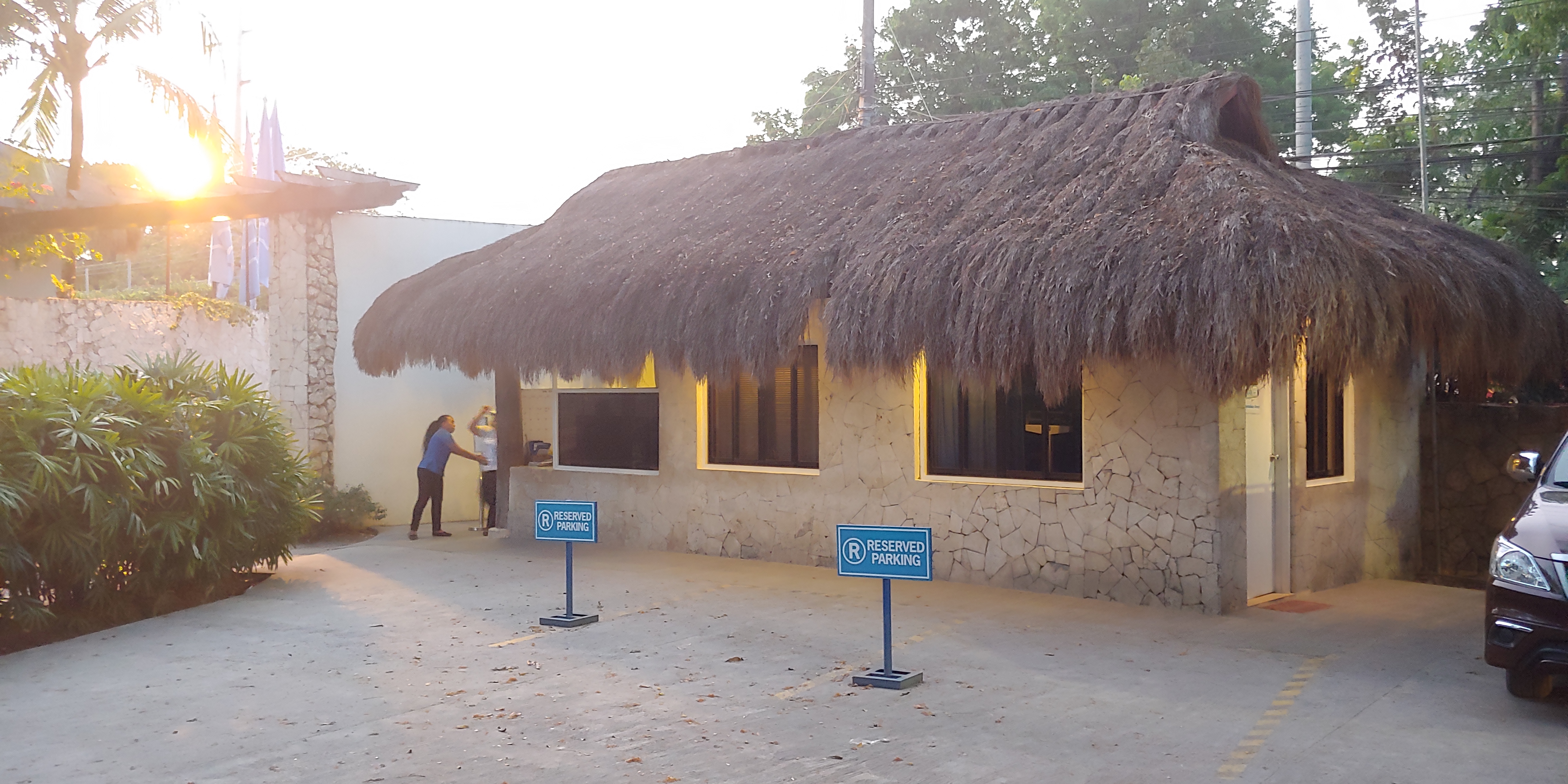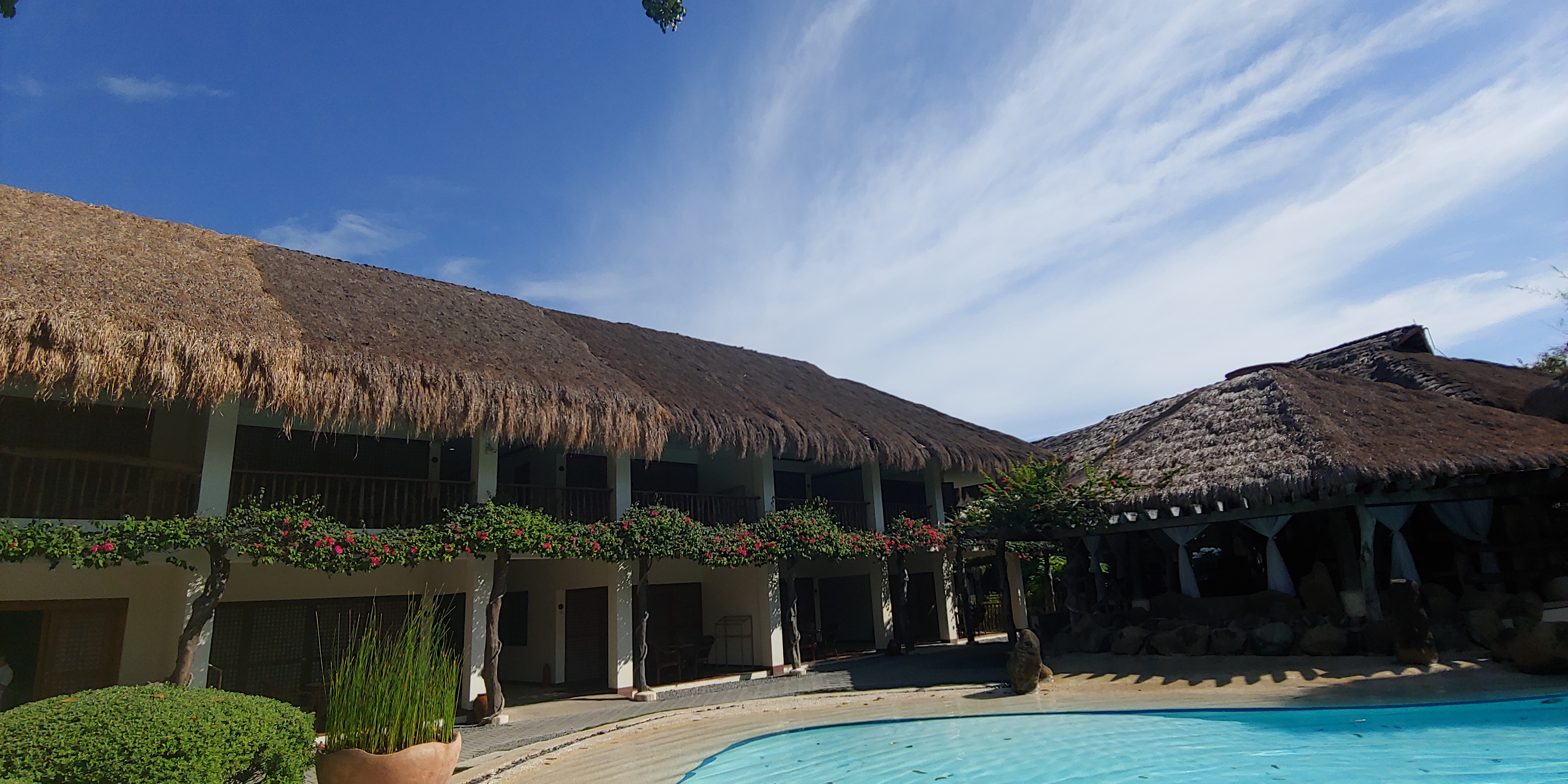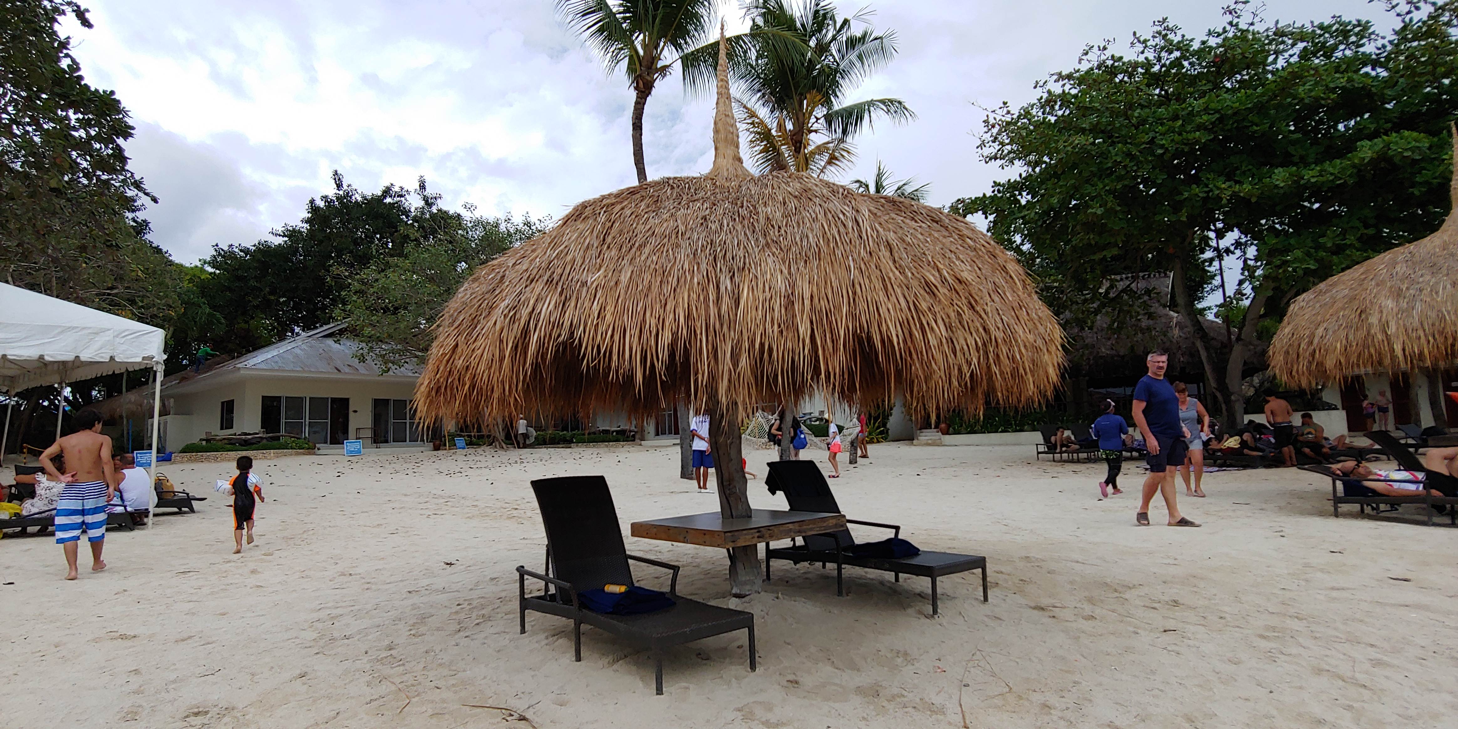 아래의 사진의 원두막 같이 생긴 건물은 블루워터 마리바고 비치 리조트(BLUEWATER MARIBAGO BEACH RESORT)의 로비 입니다