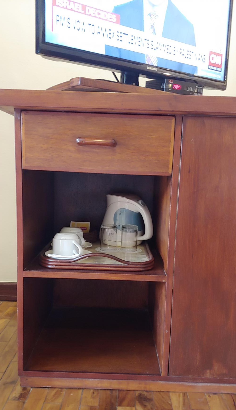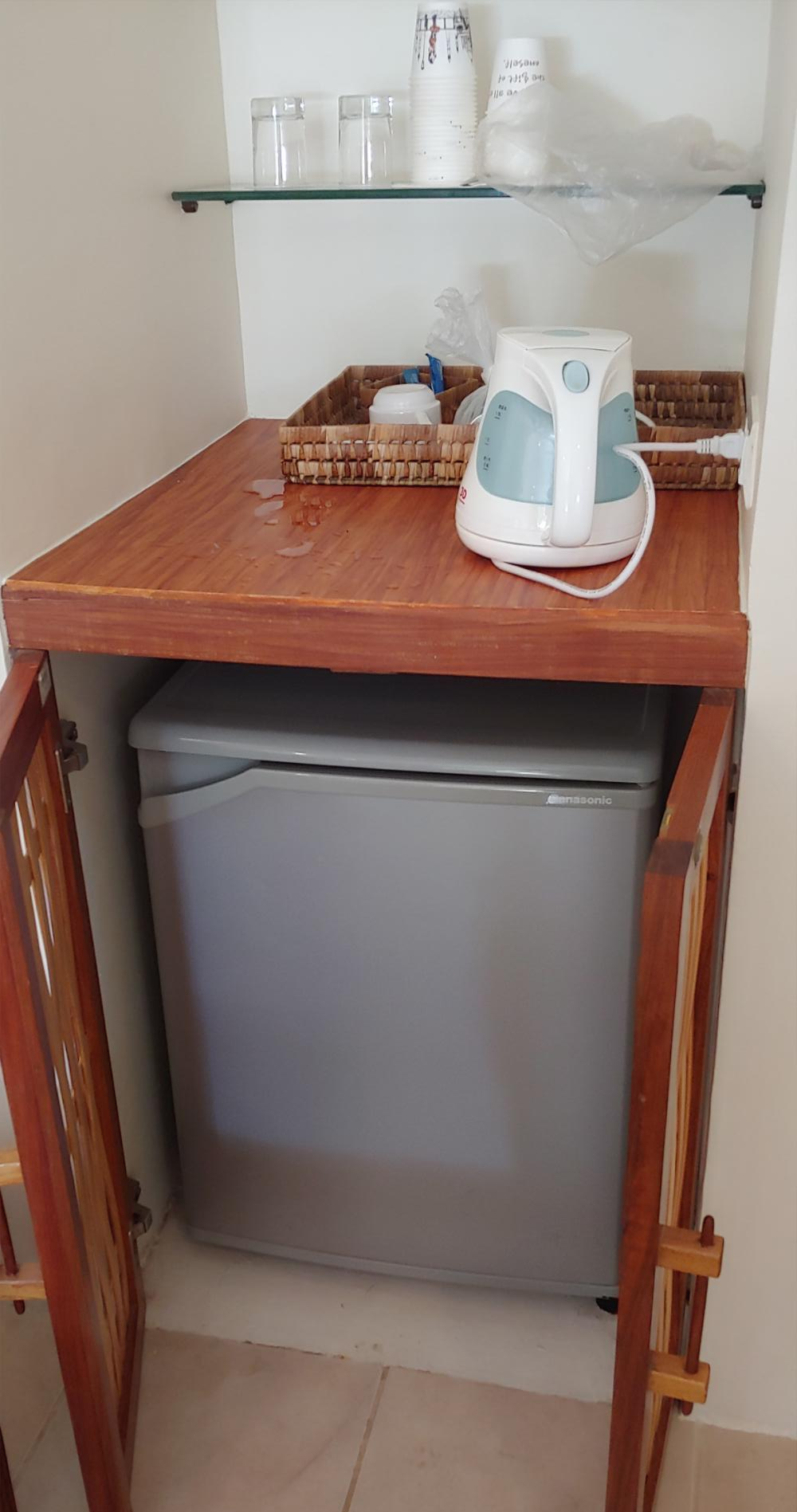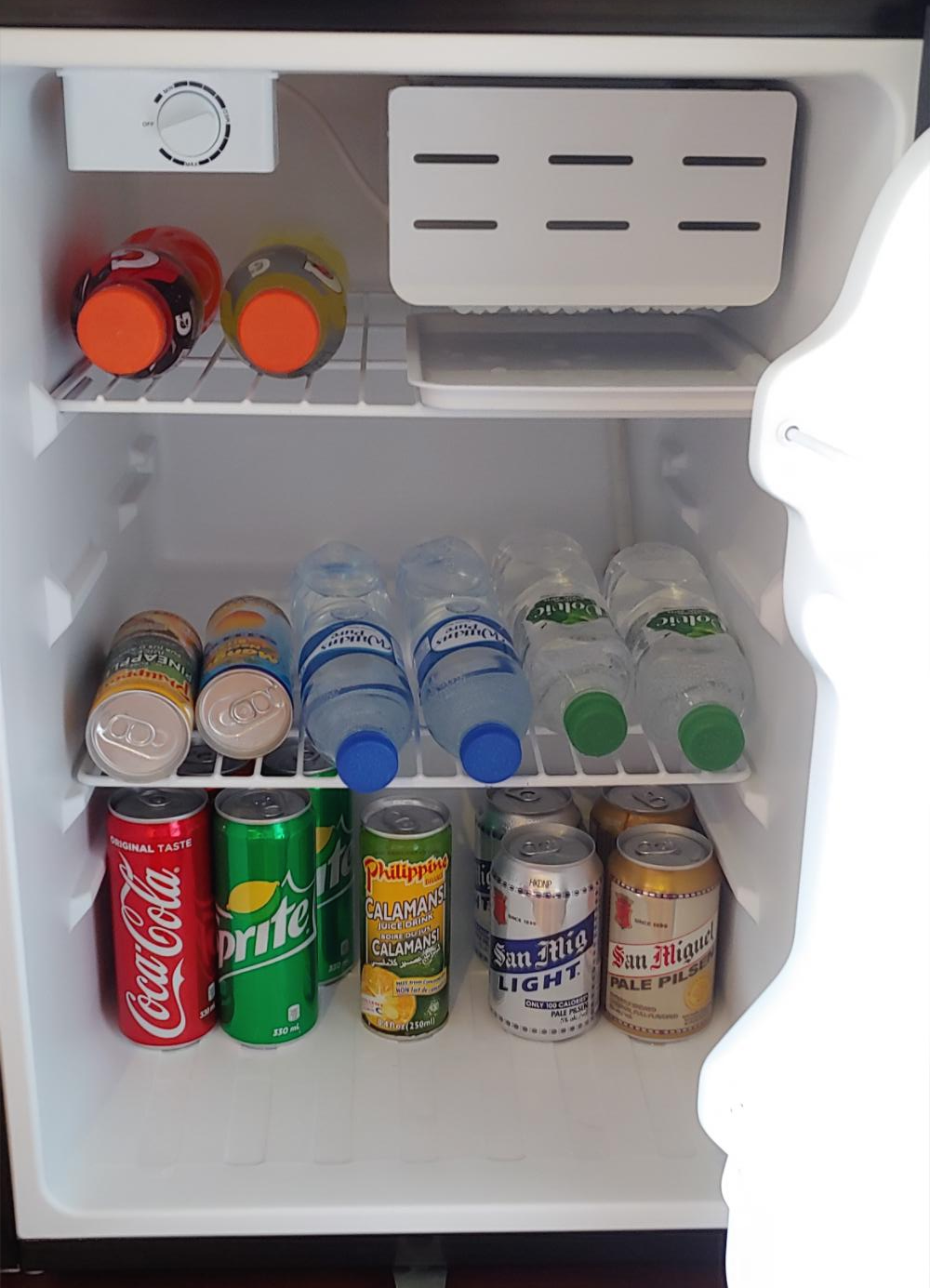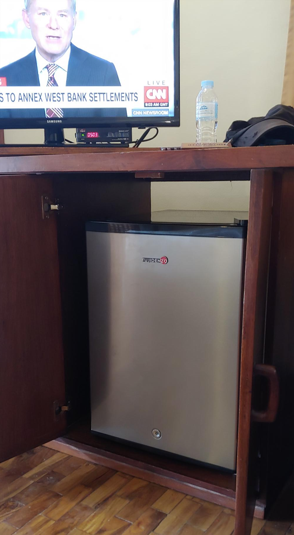 TV 밑에 작은 냉장고가 있고 안에 음료와 물, 맥주 등이 있었으며 가격도 적혀 있는 종이도 있었습니다