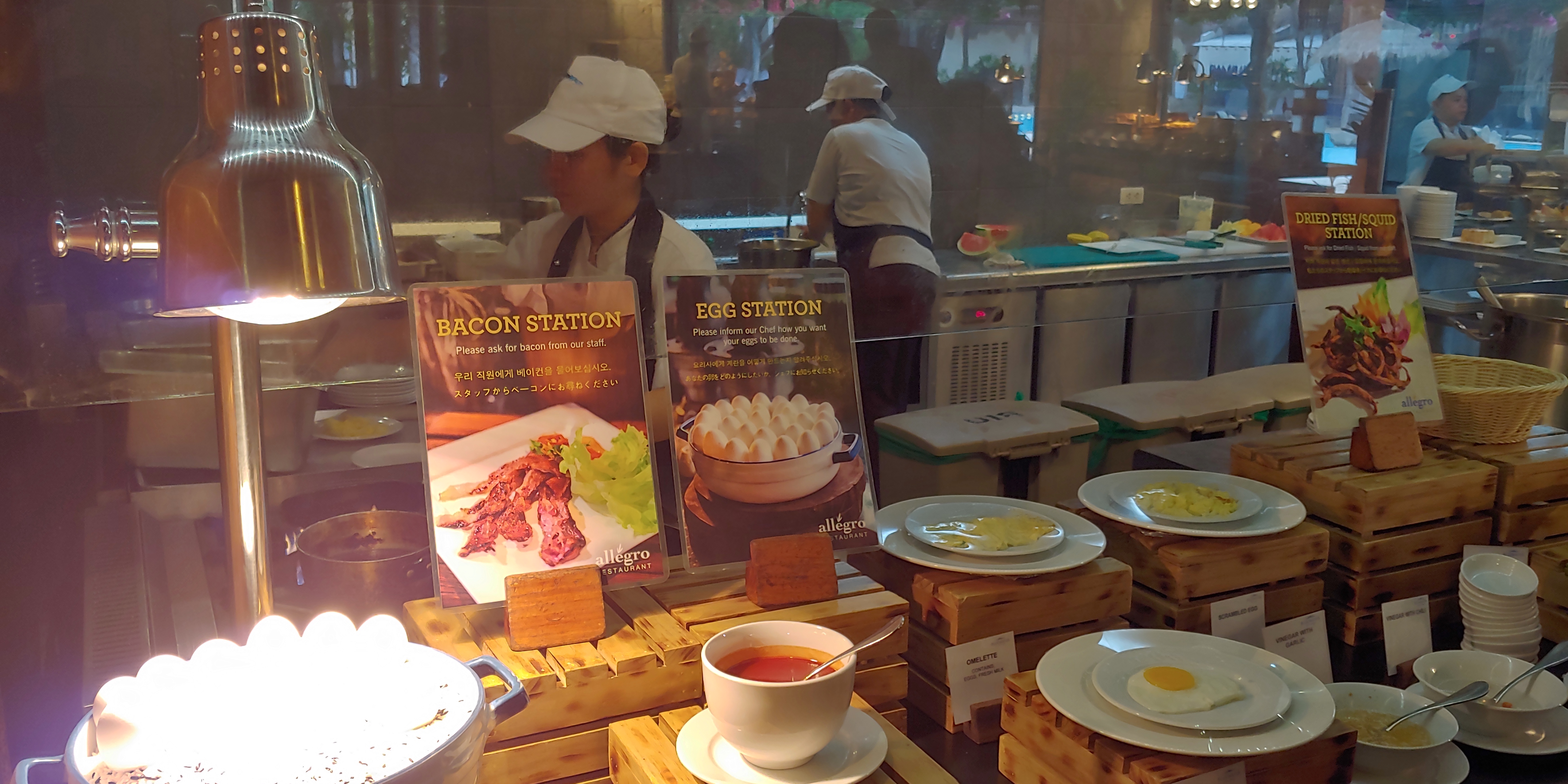 계란요리 등을 즉석에서 해주는 곳에 가서 베이컨을 요청 하면 직원이 조금씩 덜어줬고 한번에 많은 사람이 이용하게 되면 줄도 서야되고 베이컨 조리를 해야된다고 나중에 다시 오라고 해서 불편 했습니다