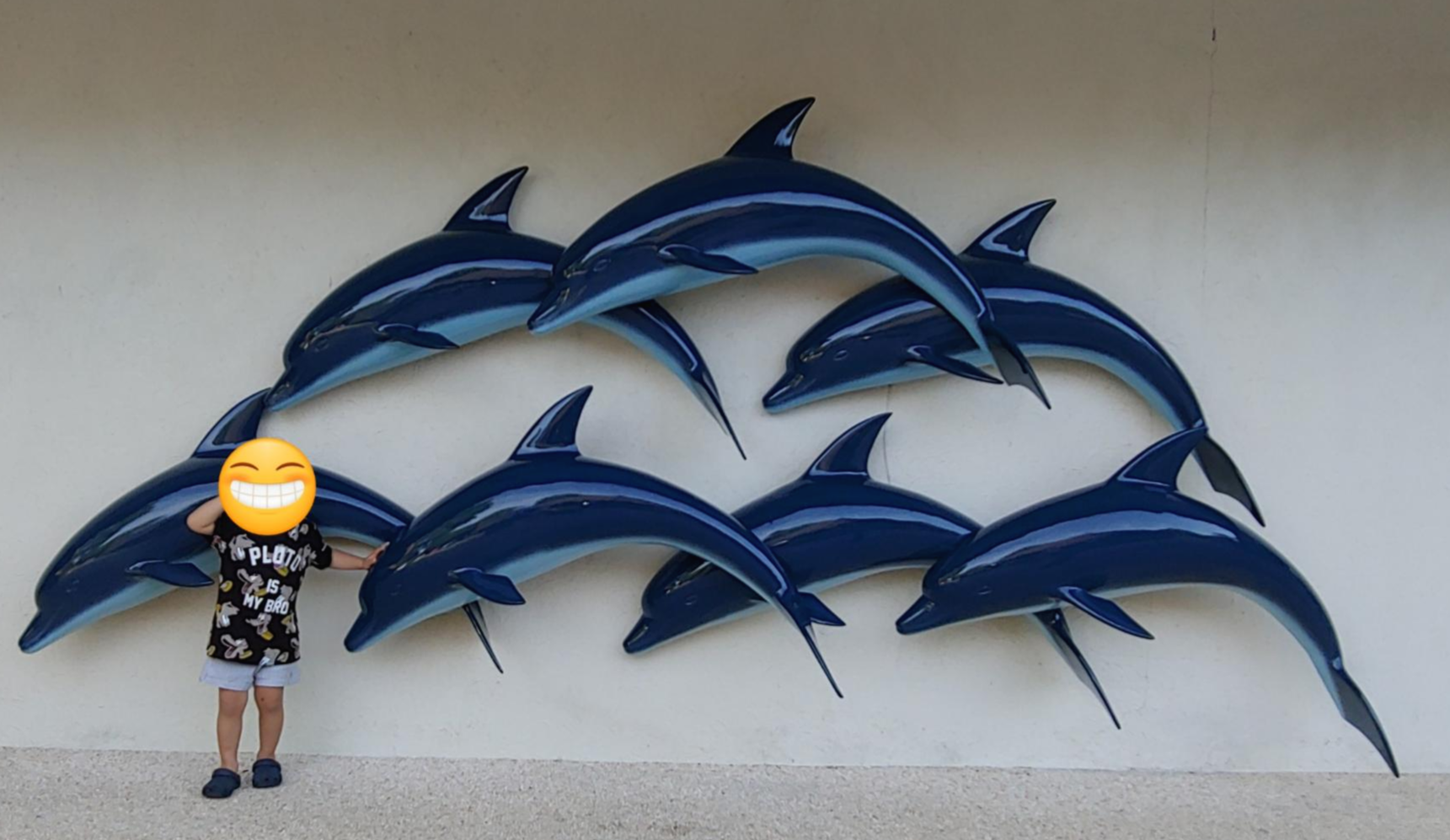 블루워터 마리바고 비치 리조트(BLUEWATER MARIBAGO BEACH RESORT)의 마스코트처럼 벽에 붙여 놓은 돌고래 입니다