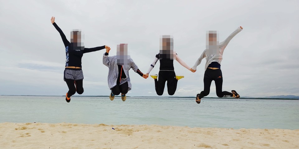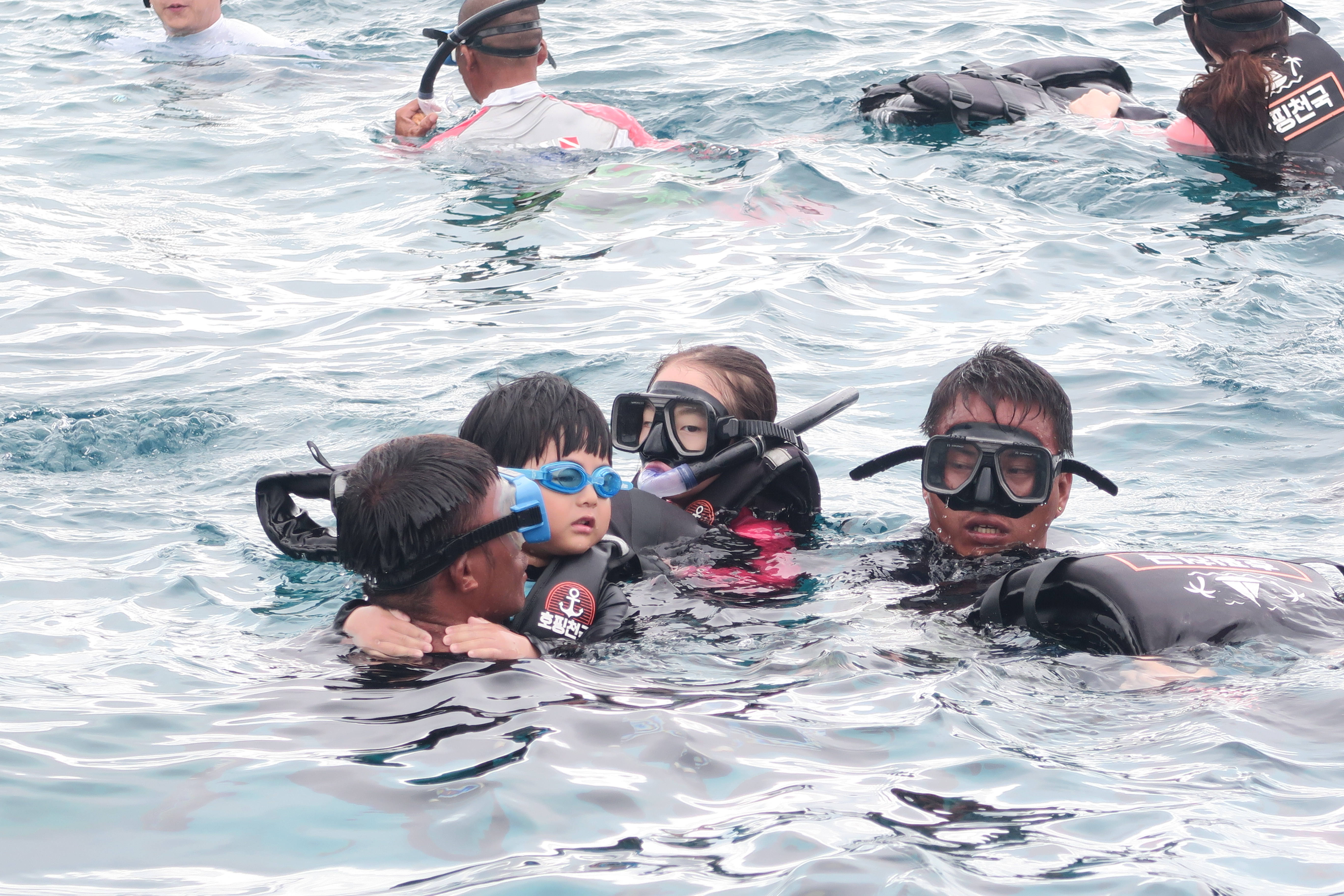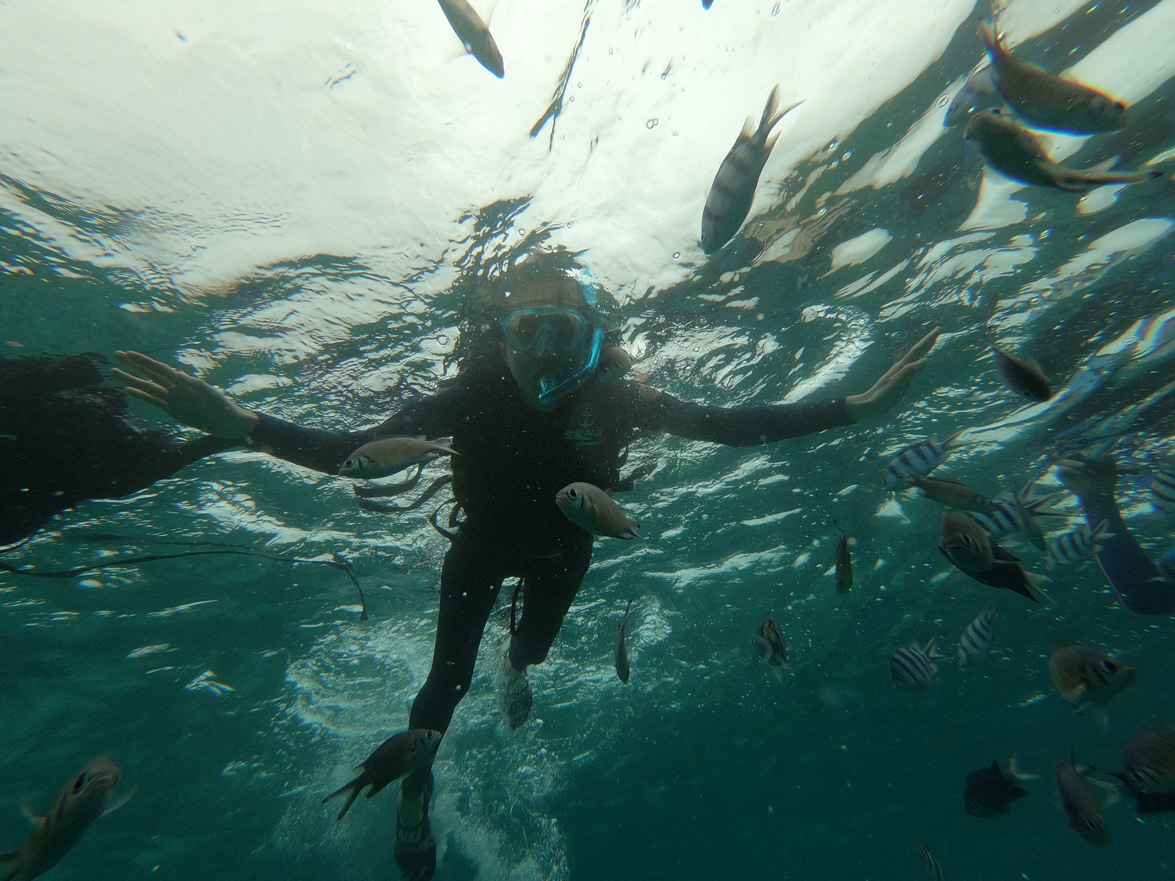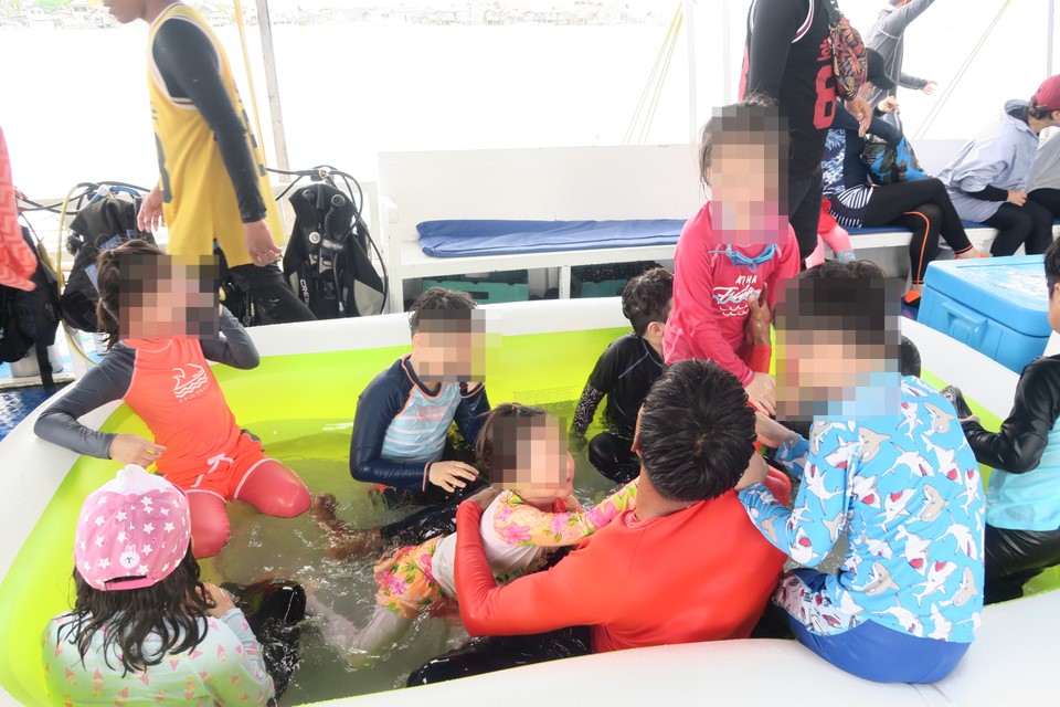 스노클링 지점에 도착해서 각 스탭들의 도움을 받아 체험을 시작했습니다