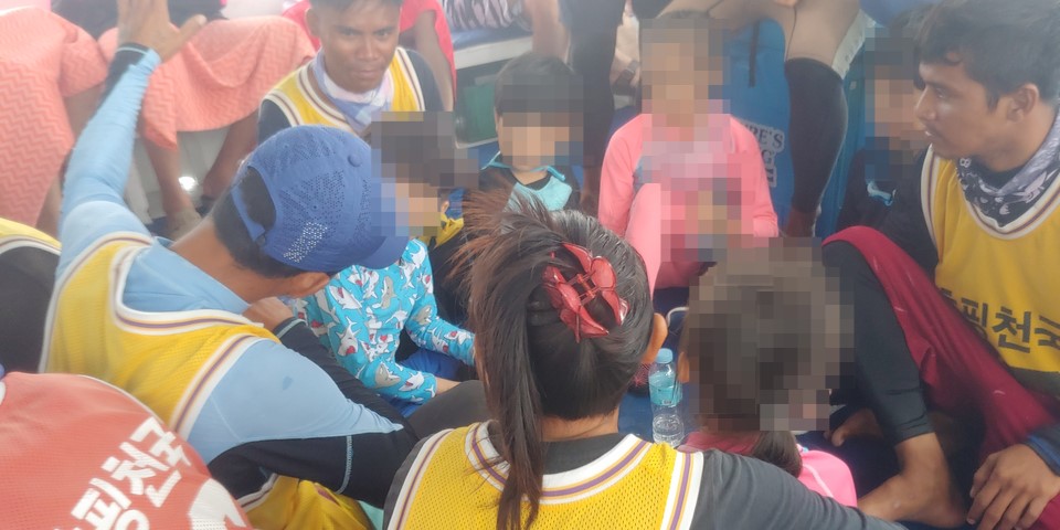 배를 타고 이동하는 시간이 꽤 되어 스탭들은 아이들이 지루하지 않게 재미있게 놀아주었습니다