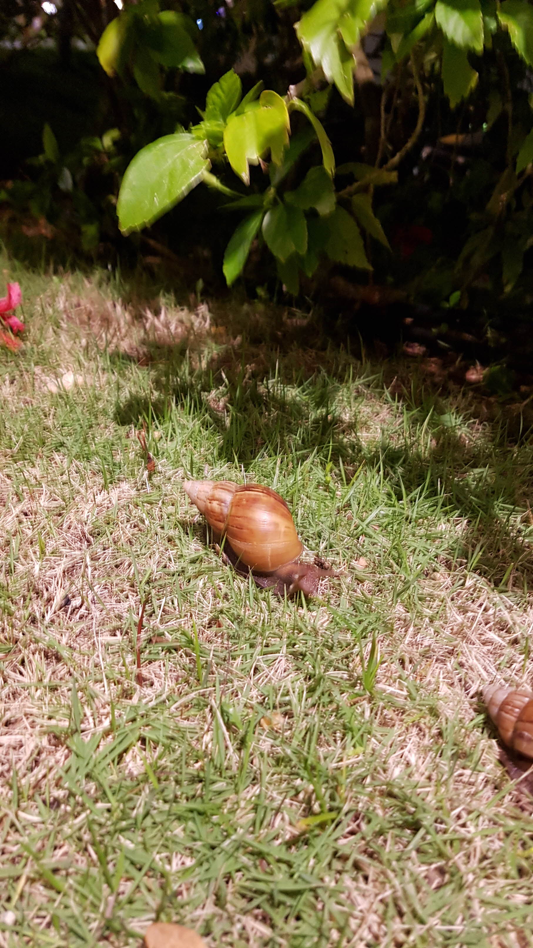 괌 리프 & 올리브 스파 리조트(Guam Reef & Olive Spa Resort) 앞 에서 부터 잔디와 나무가 있는 곳으로 가면 엄청 큰 달팽이 들이 많았습니다
