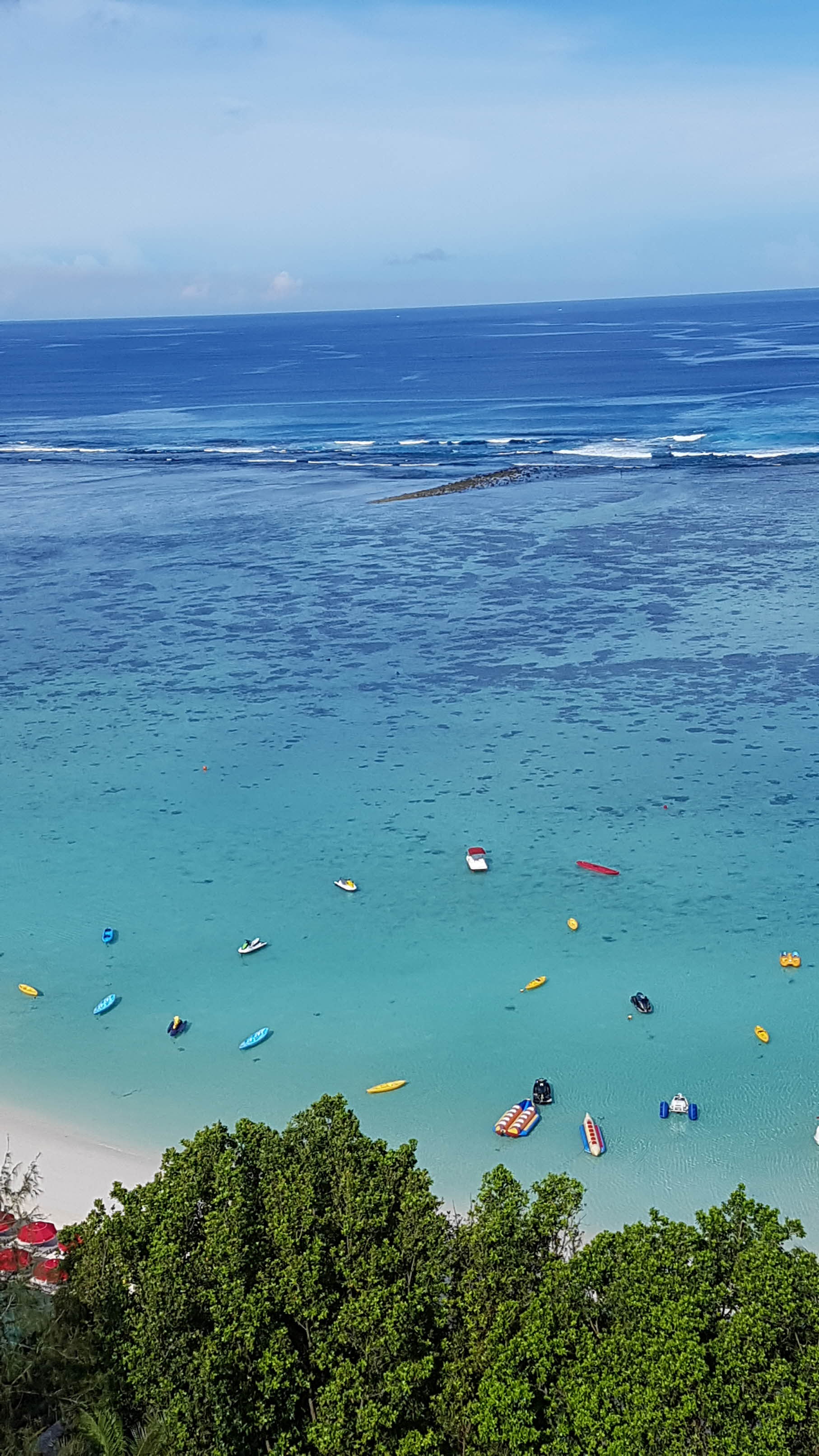참고로 바다가 깨끗해서 산호초가 있는 부분은 멀리서 보면 검은색 같이 보이는데 그곳에 가면 많은 물고기 들이 주변을 맴돌고 있습니다