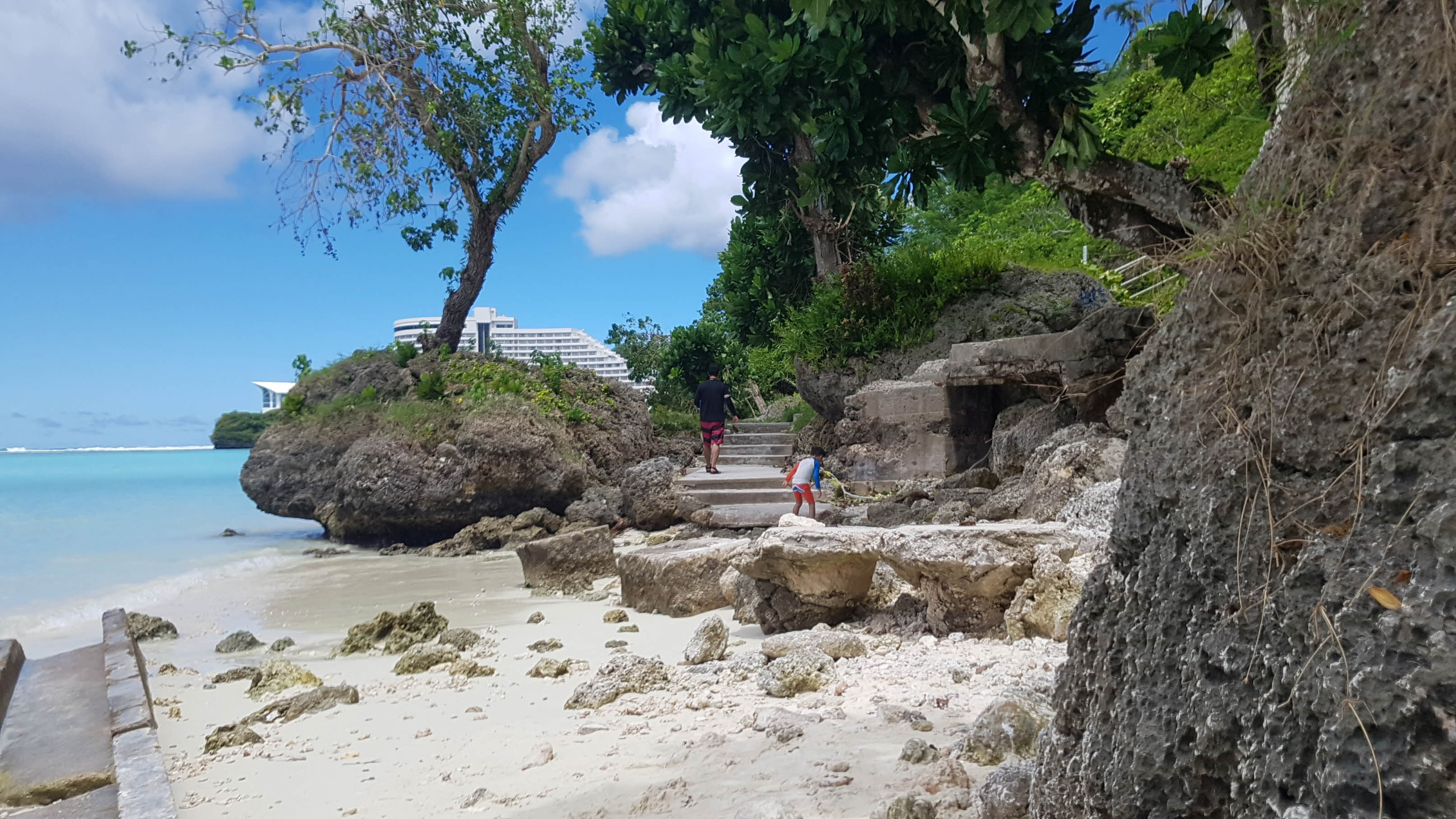 괌 리프 & 올리브 스파 리조트(Guam Reef & Olive Spa Resort) 바로 앞 바다 옆쪽으로 조금만 걸어가보면 돌이 많은 곳이 있습니다