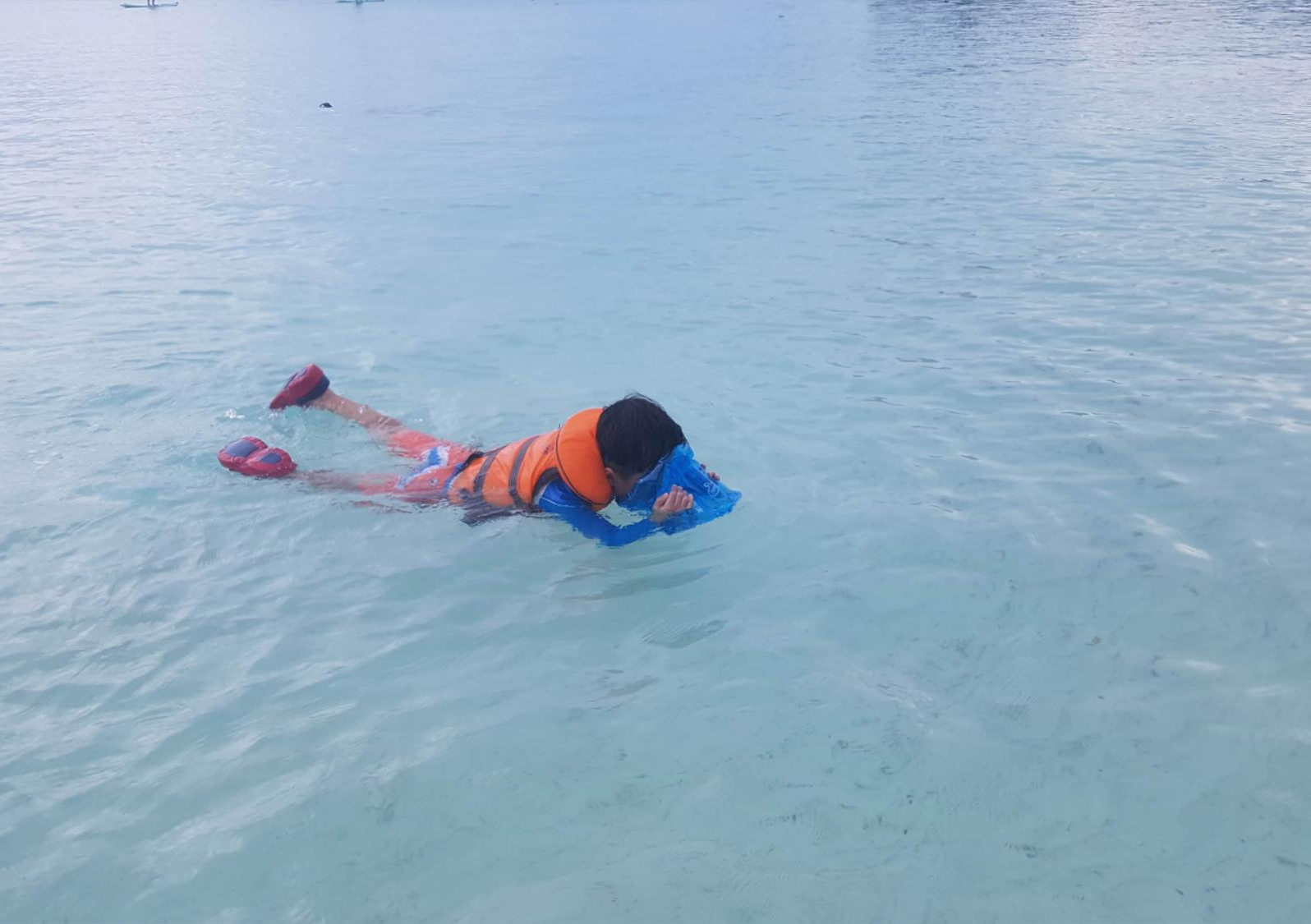 멀리 나갈 필요도 없고 깊지도 않으면서 너무 깨끗해서 스노클링을 수영을 못해도 어른 아이 모두 쉽게 즐길 수 있었습니다