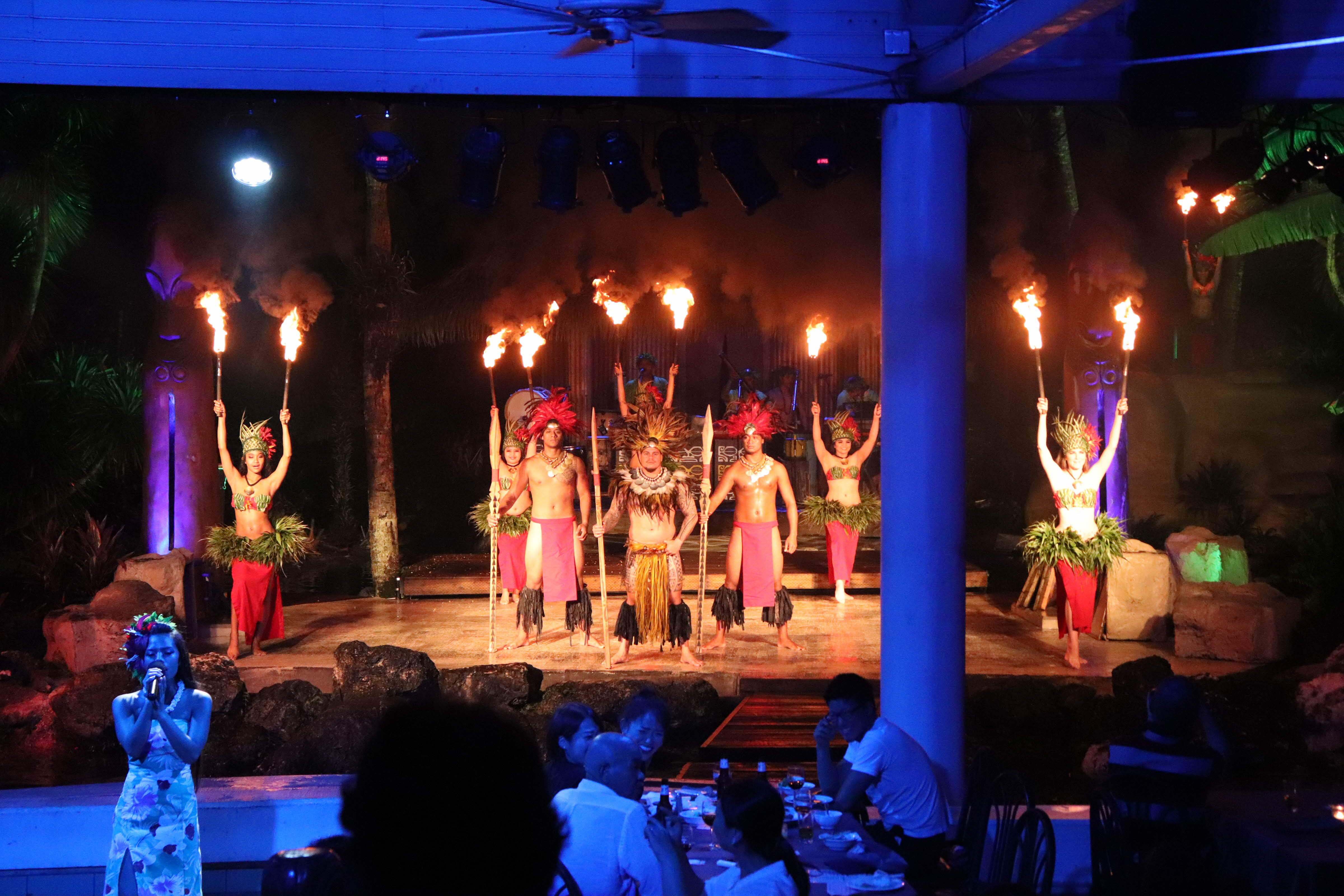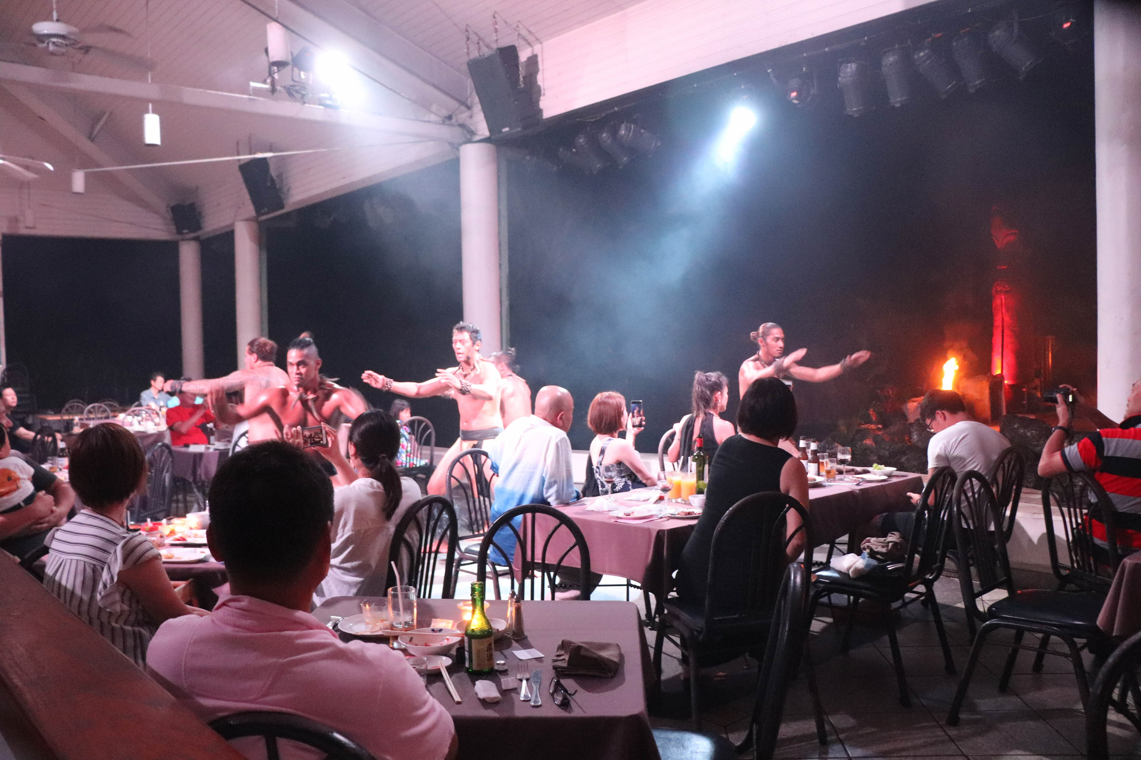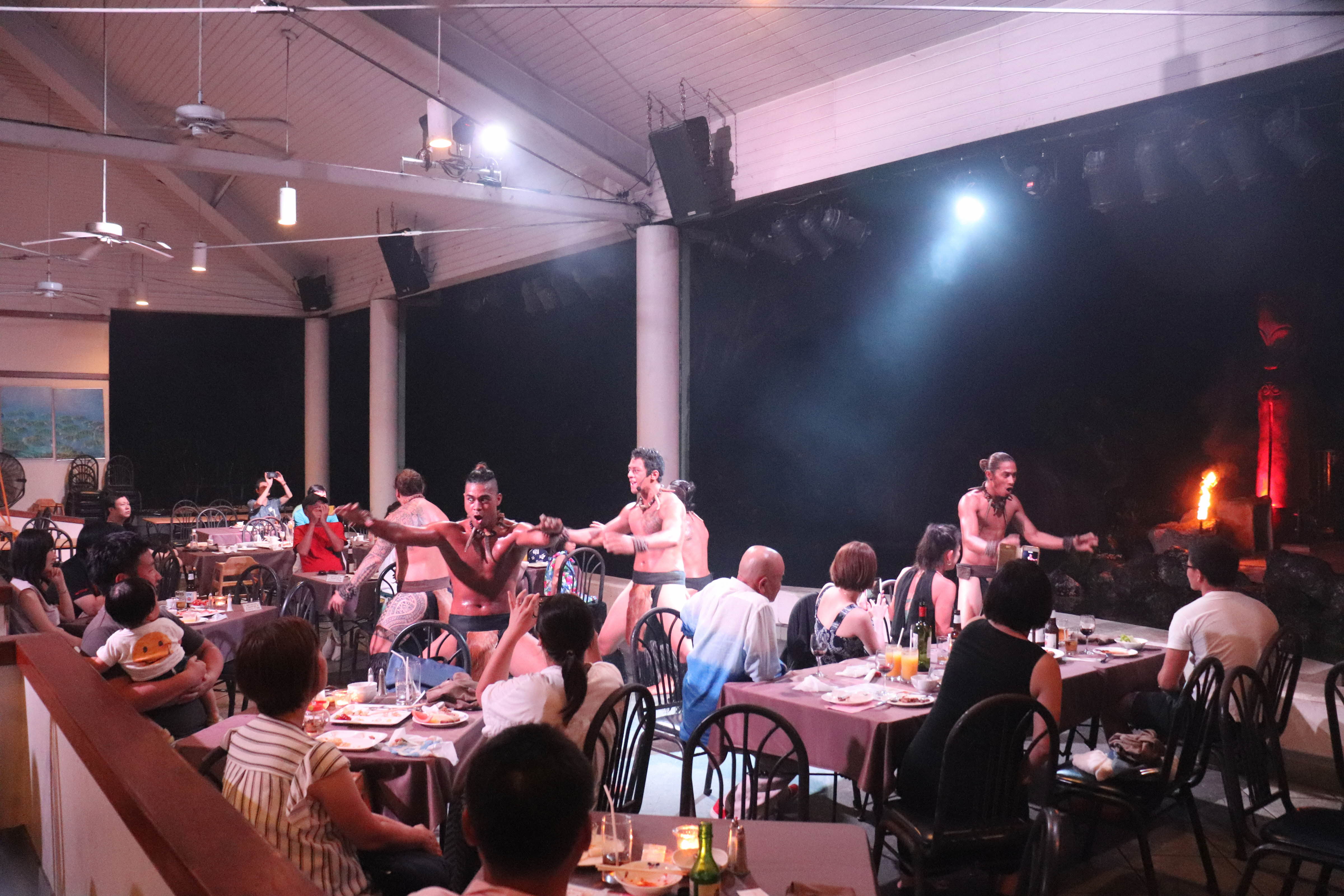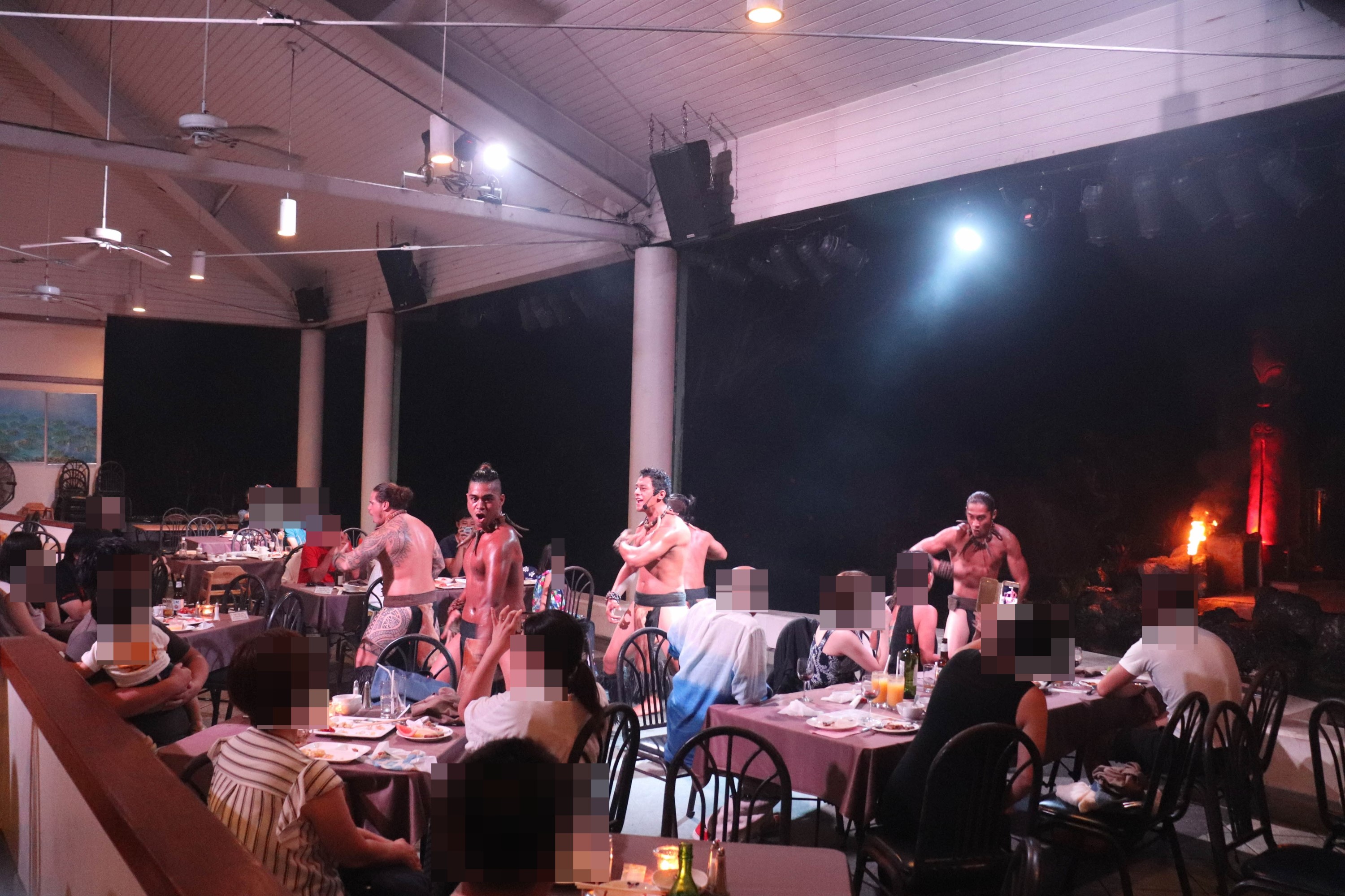이제 식사하는곳 조명이 꺼지고 불쇼가 시작되었습니다