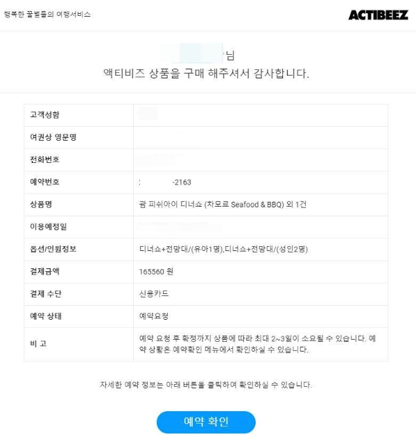 한국에서 미리 피쉬아이 디너쇼 + 전망대를 예약을 했습니다