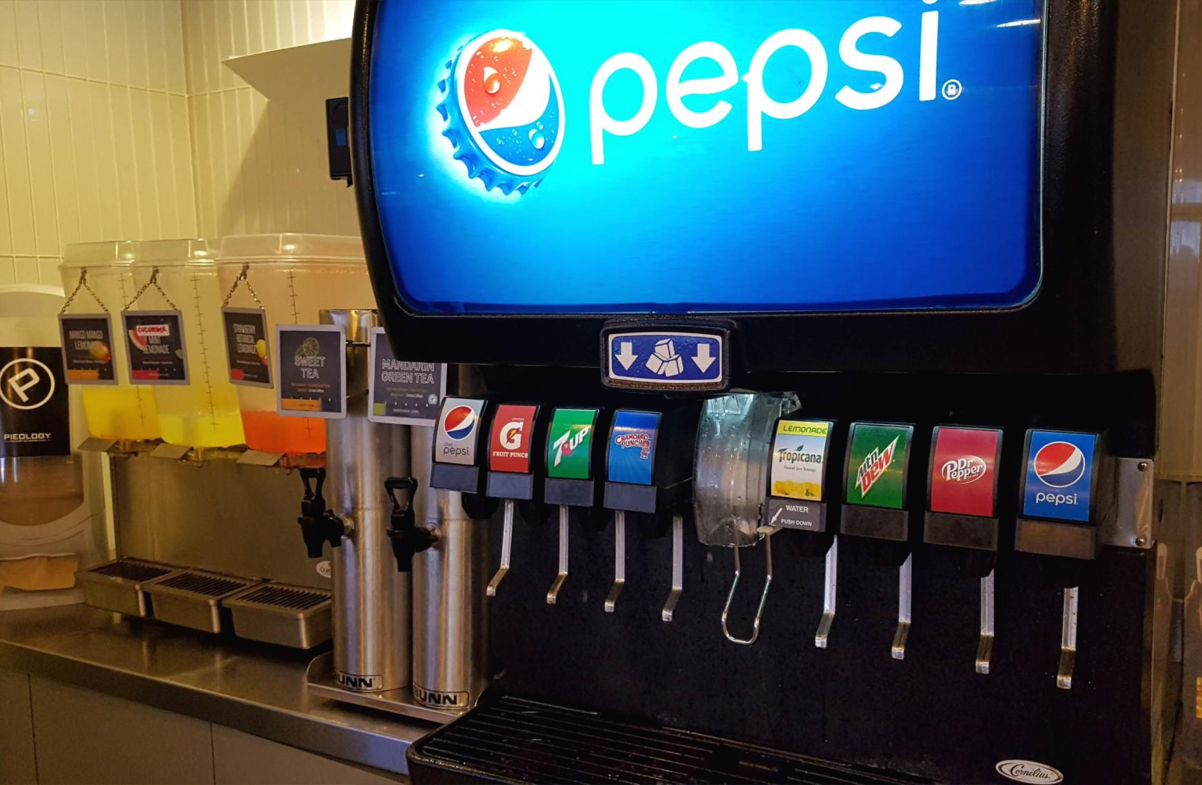 파이올로지피자(Pieology Pizzaria)에는 스프라이트가 없고 세븐업이 있는데 사이다 맛이 아닙니다