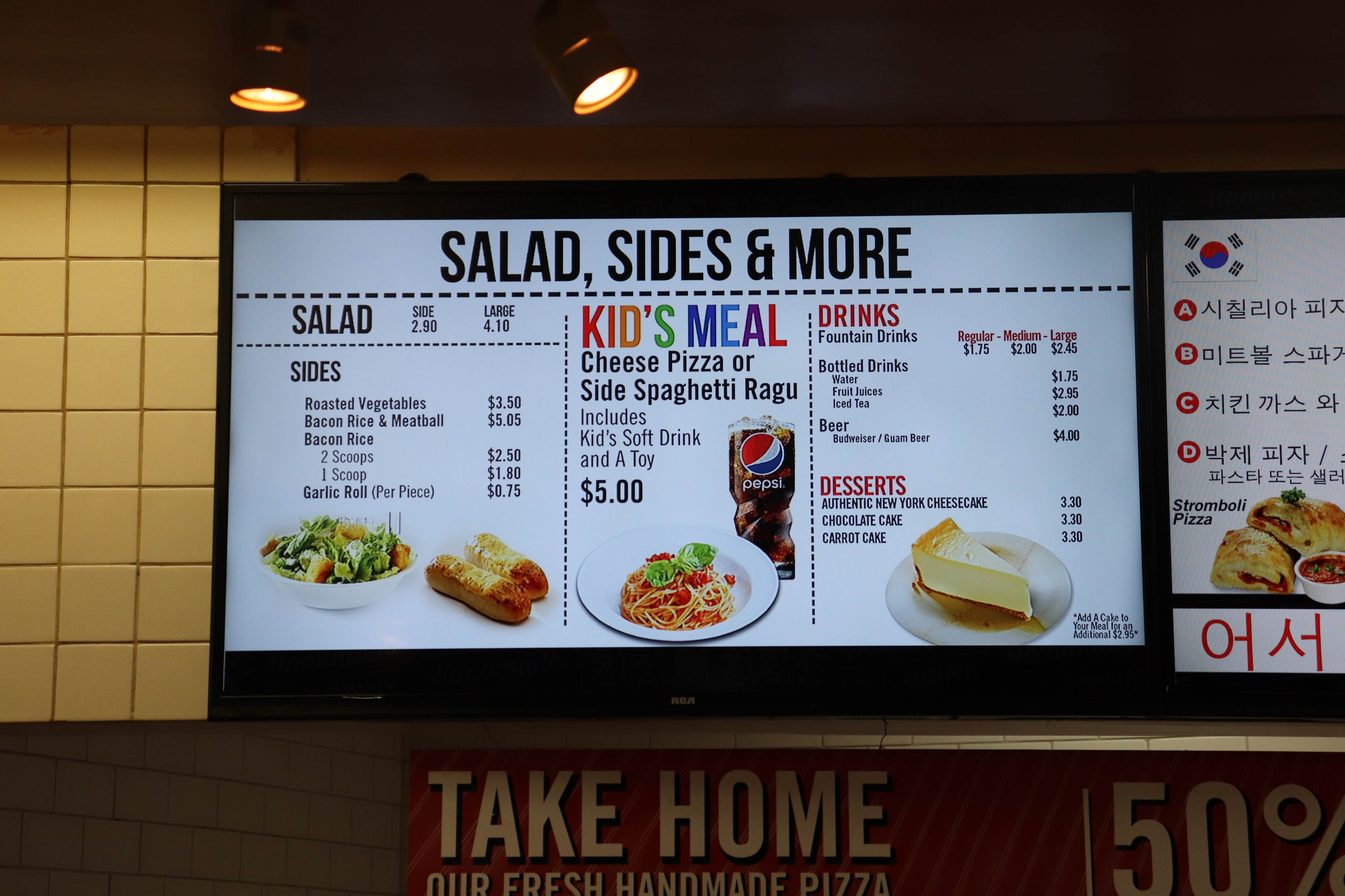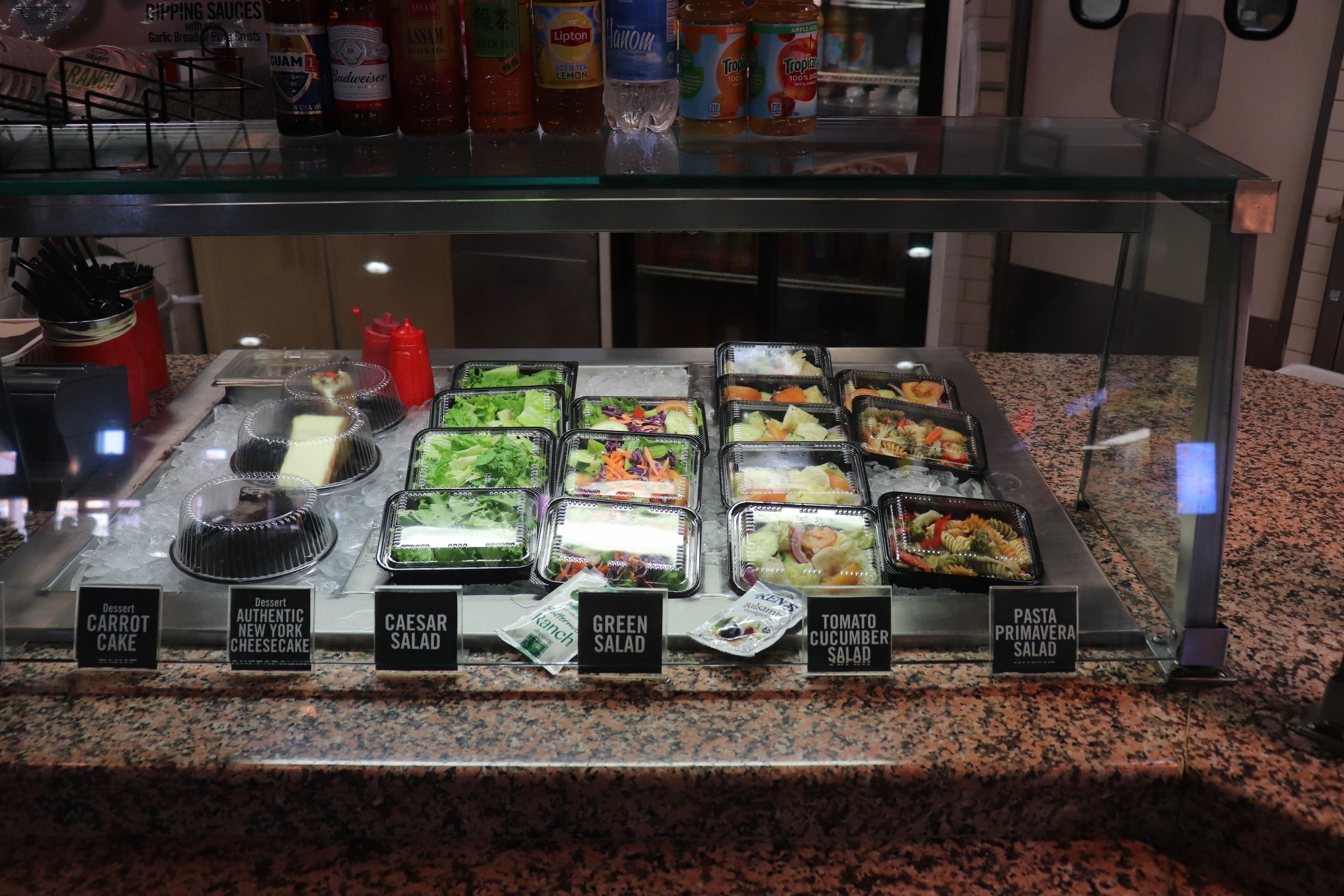 도우, 토핑, 소스를 보면서 고르고 지나가면 마지막에 계산하는 곳에서 계산을 하고 컵을 받아서 먹고 싶은 음료를 넣었습니다