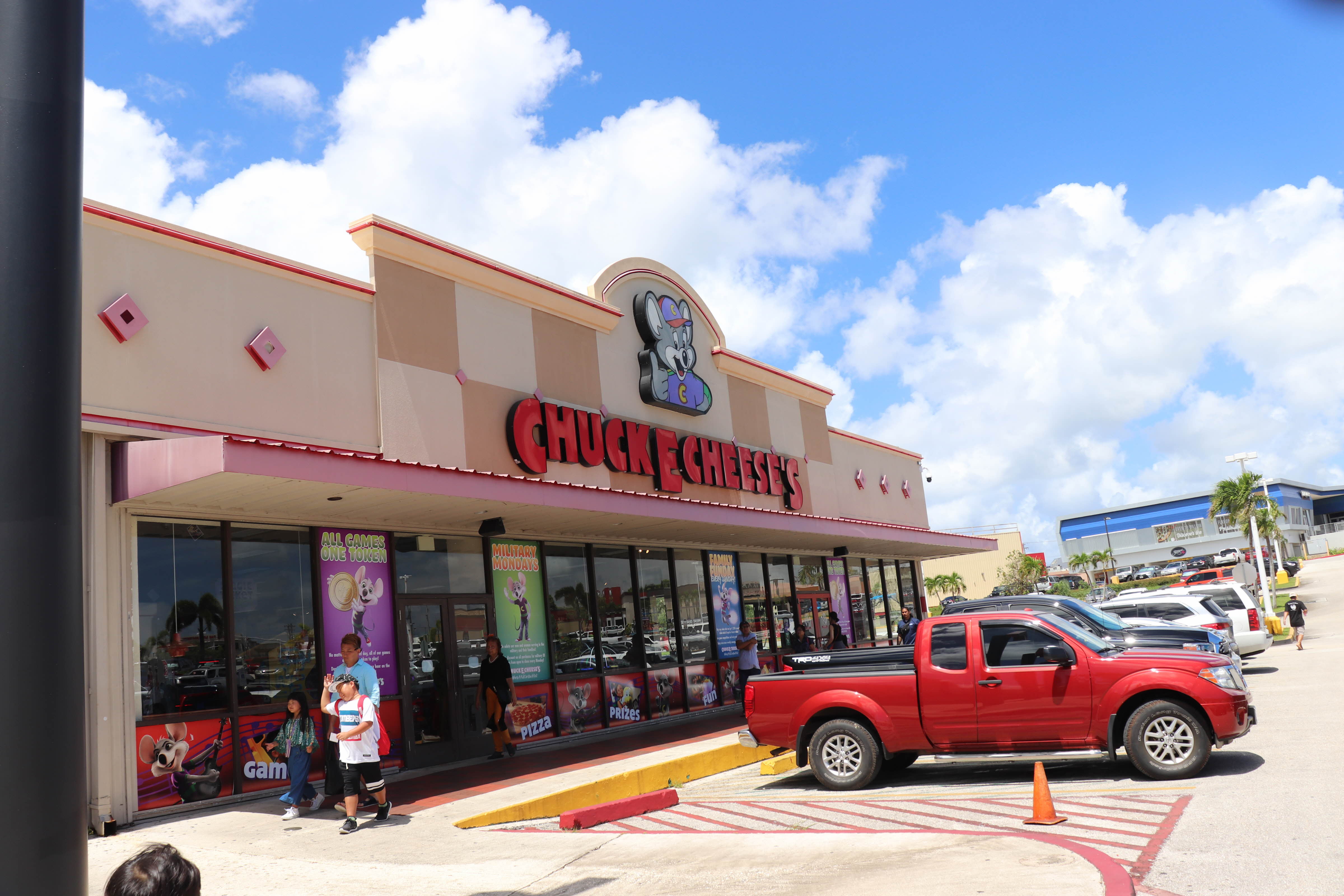 식사를 마치고 창문으로 처키치즈(Chuck E. Cheese's)가 보였습니다