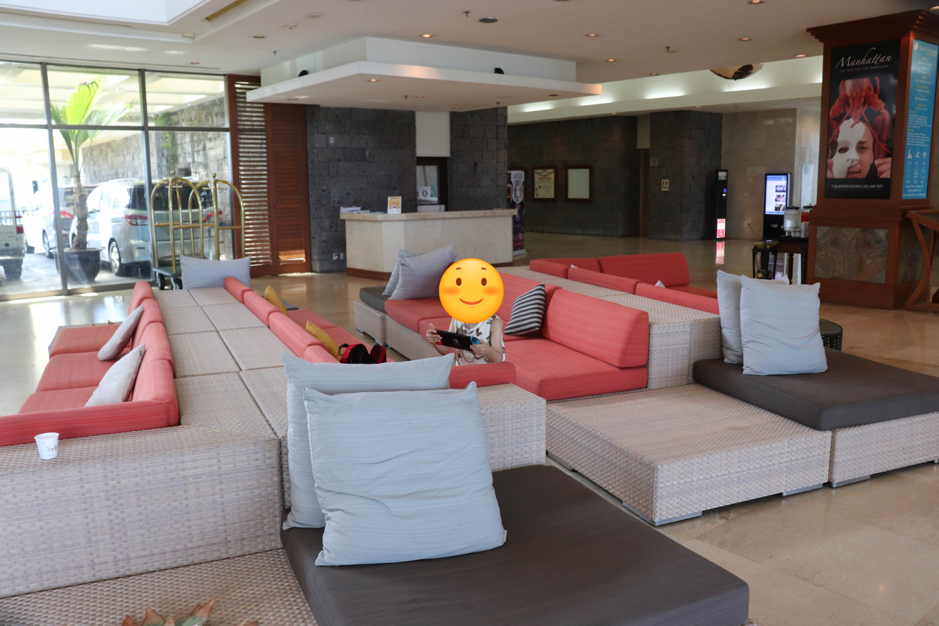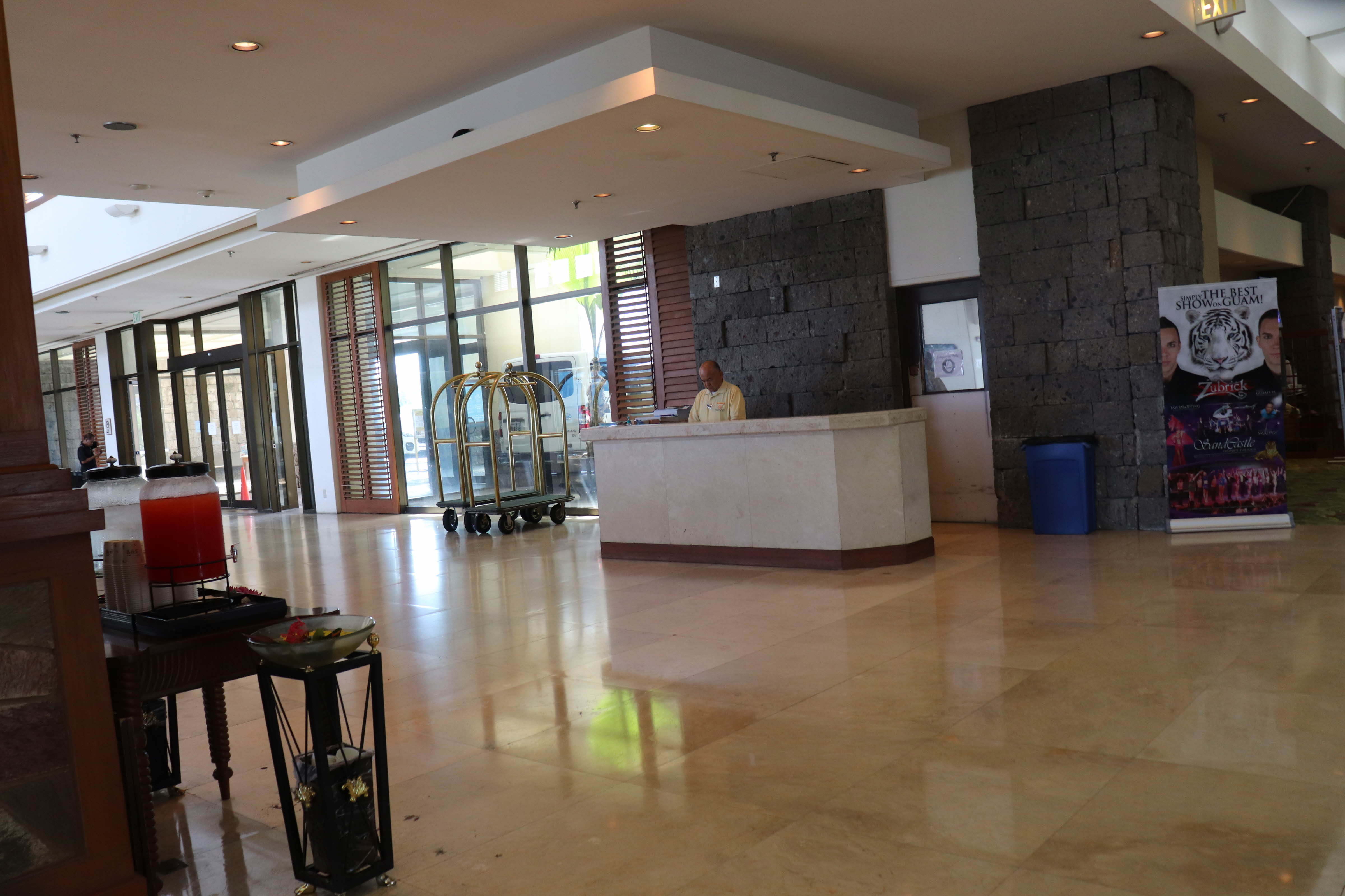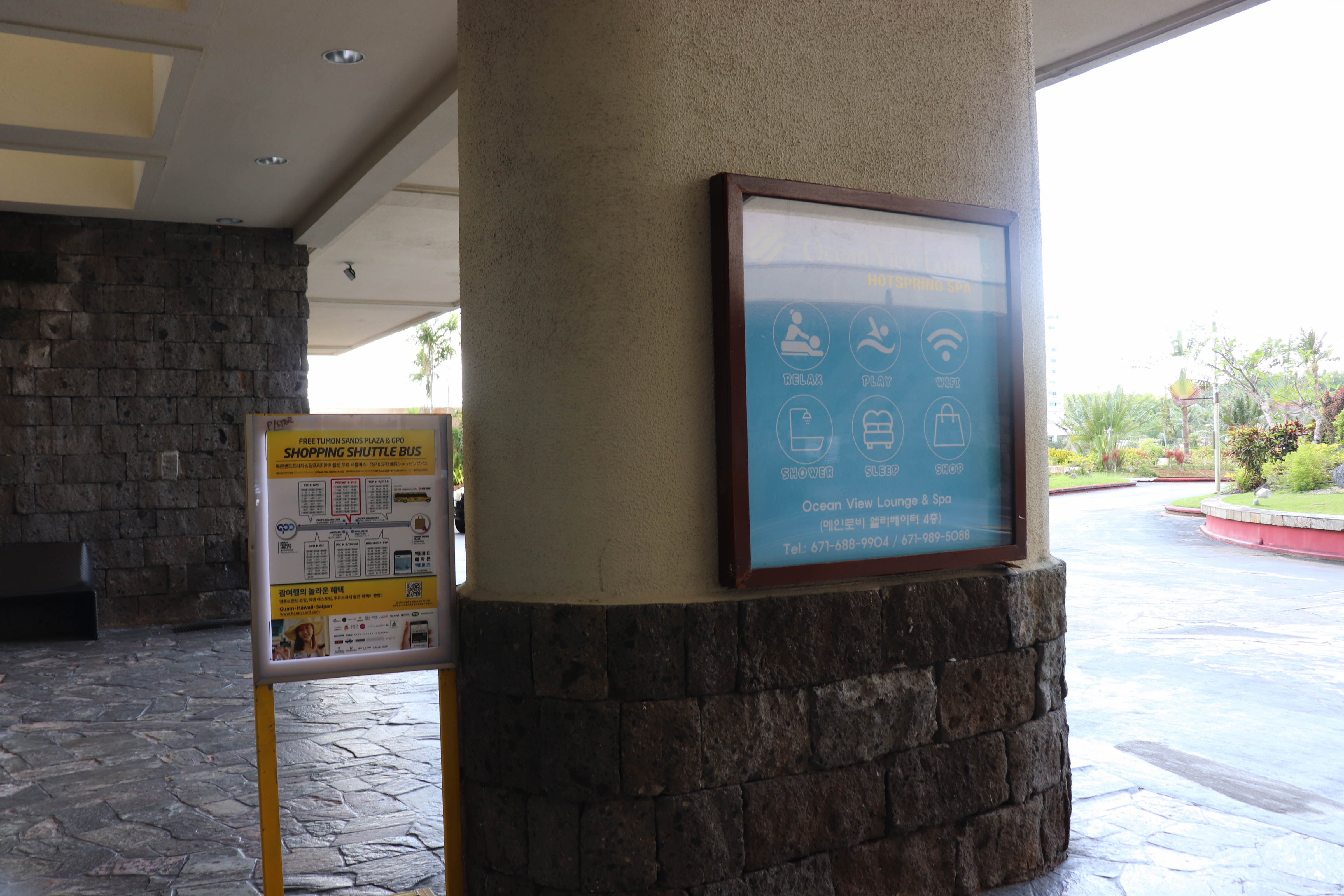 수영장과 바다에서 놀다가 괌 프리미엄 아울렛(Guam Premier Outlets / GPO)를 가는 셔틀 버스를 타기위해 로비쪽으로 나왔습니다
