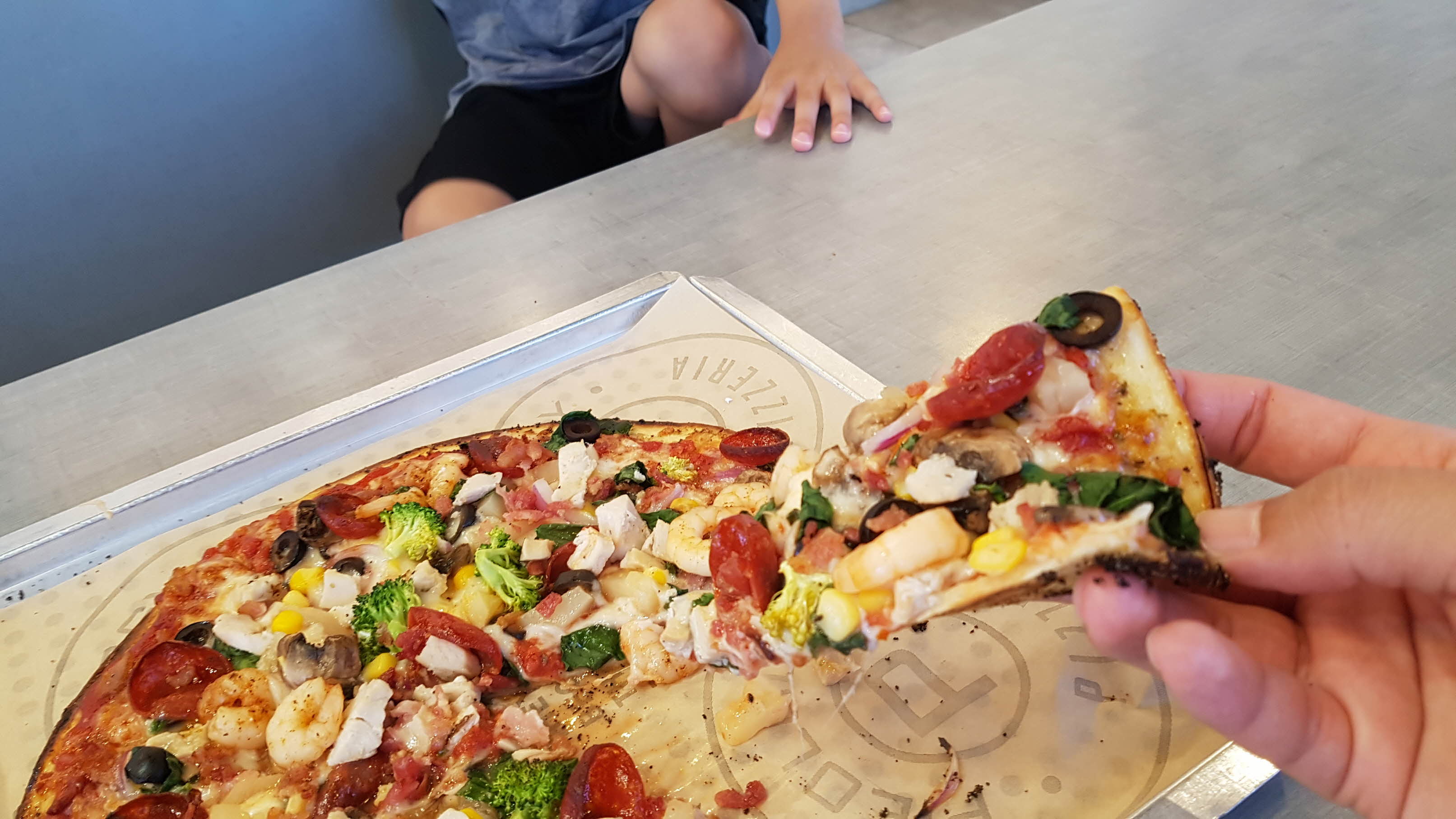 괌 프리미엄 아울렛(Guam Premier Outlets / GPO)에 도착해서 처키치즈(Chuck E. Cheese's)를 이용하고 식사를 하기위해 주차장 건너편에 보이는 파이올로지피자(Pieology Pizzaria)로 갔습니다